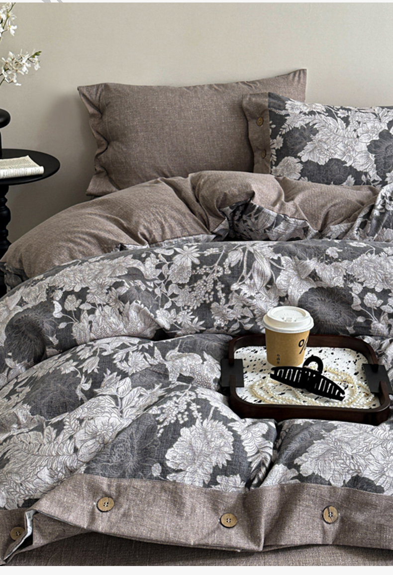 漫仙阁家纺 2025秋冬新品加厚高克重复古风双层纱印花四件套 浮绘花影