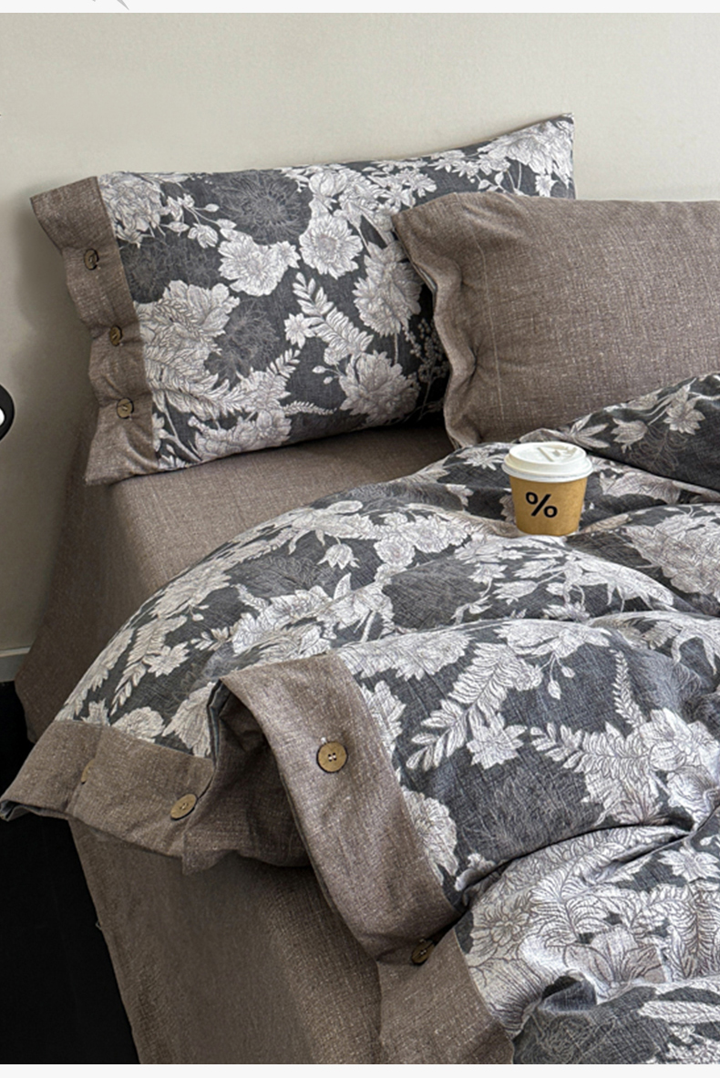 (总)漫仙阁家纺 2025新款加厚高克重原麻复古风印花四件套,布袋子,粉黛,花蕾-咖,花蕾-绿,金枝玉叶,锦簇,盛夏,素锦,向阳花开,一抹香,绽放