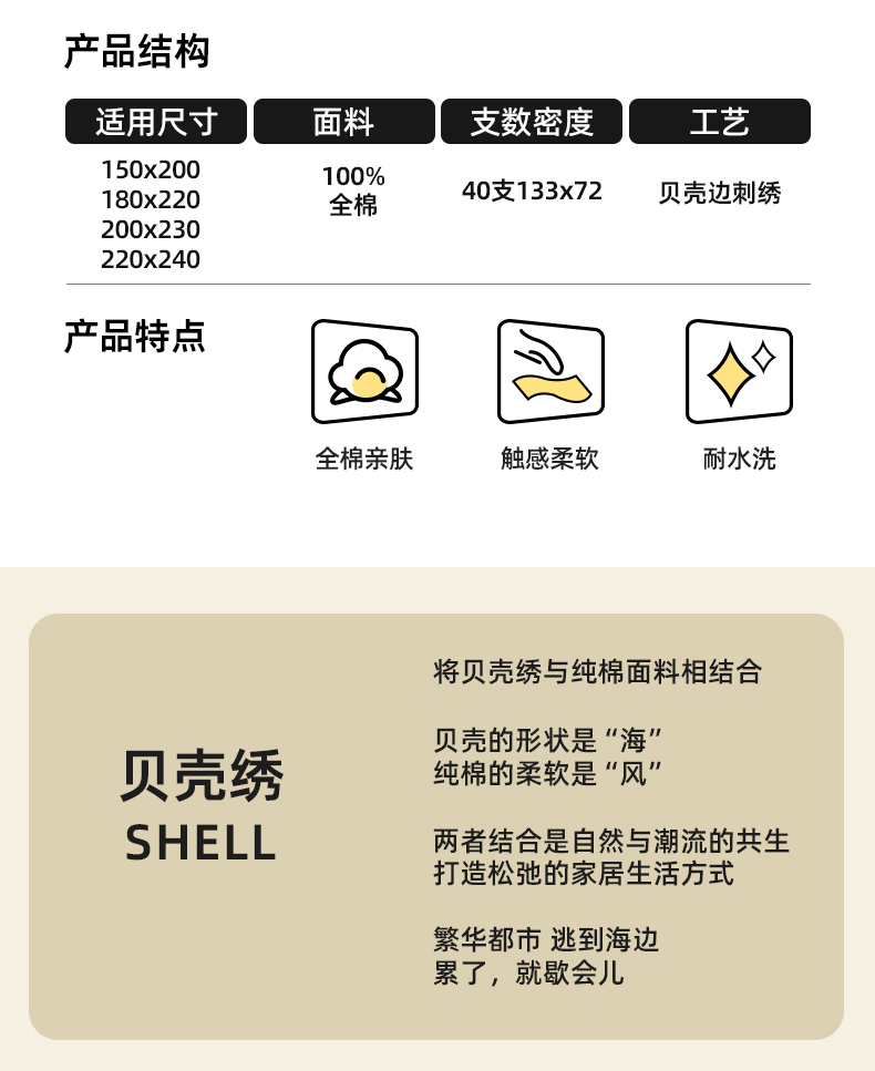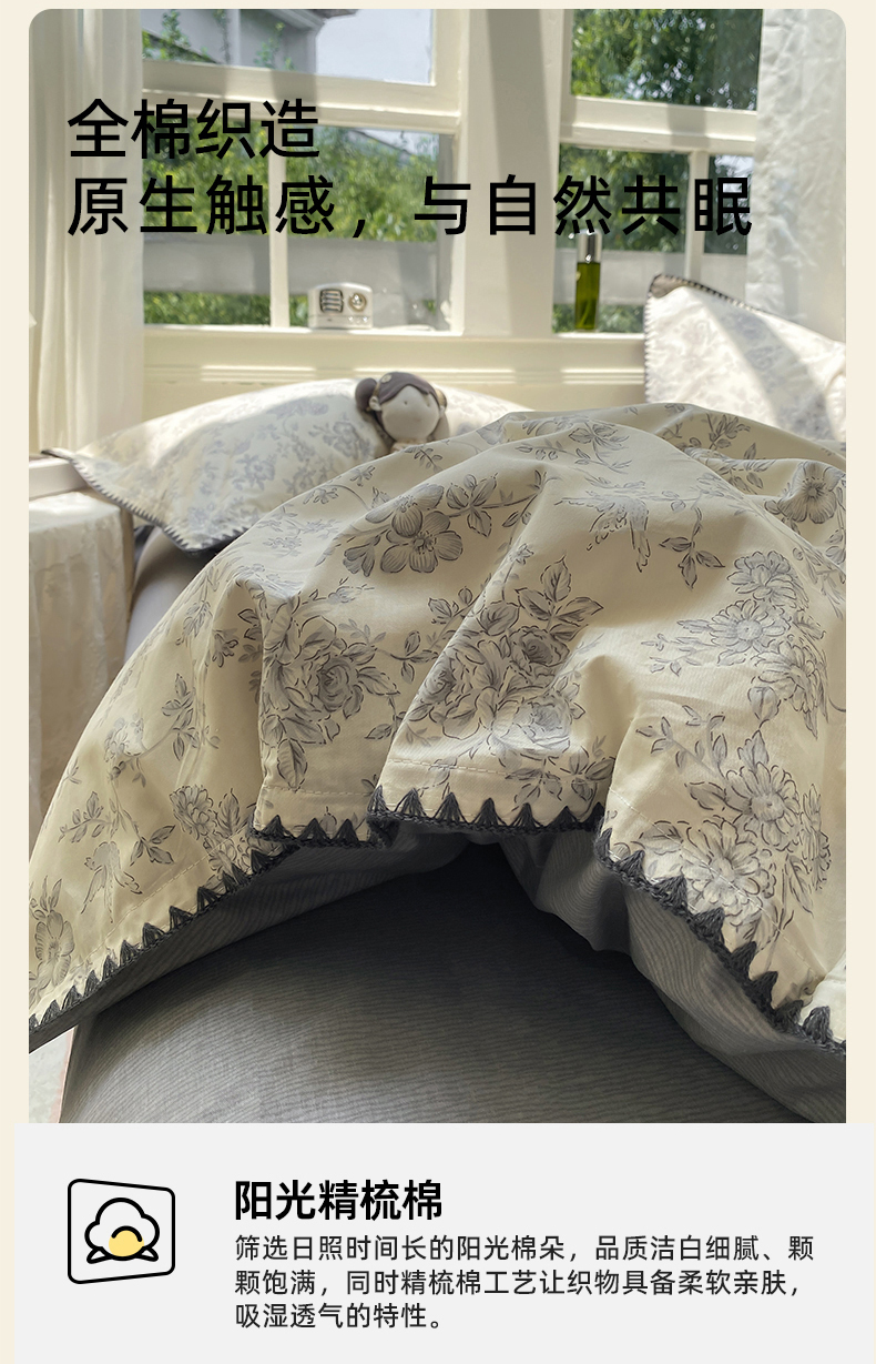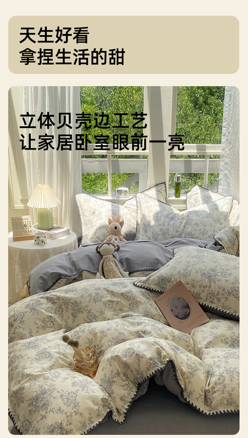 商品名称:浮光家居 2025新款全棉贝壳边系列单被套 洛莉