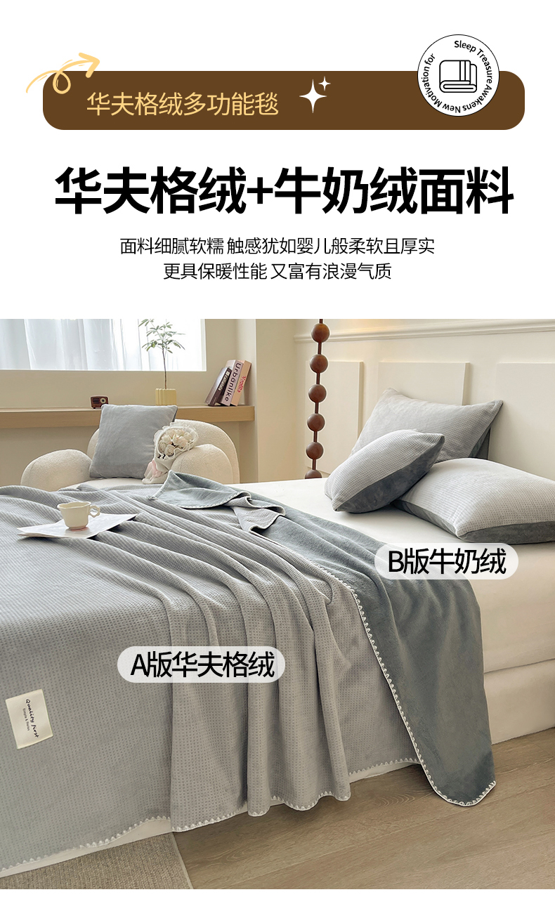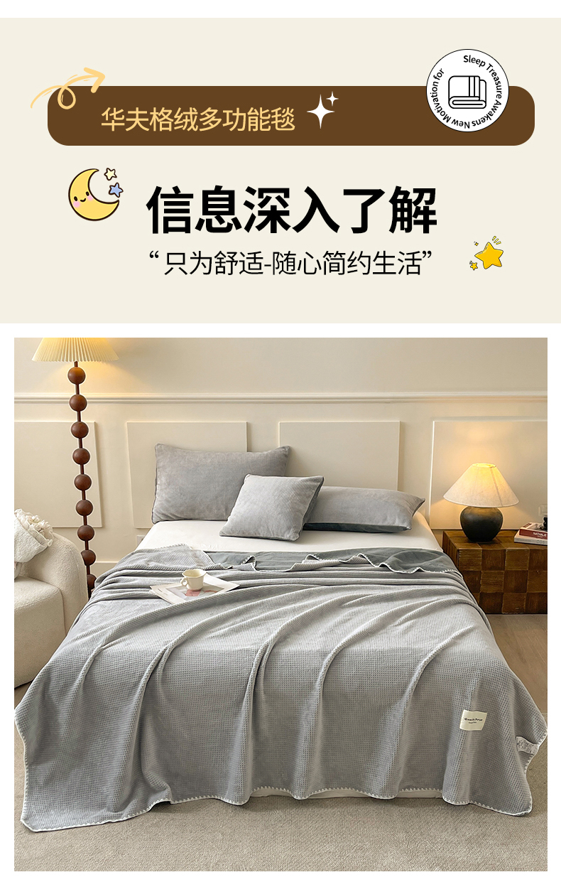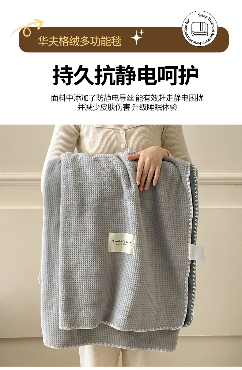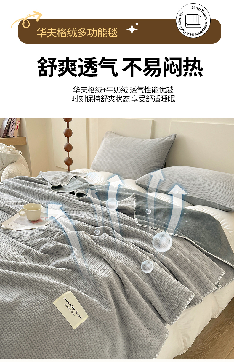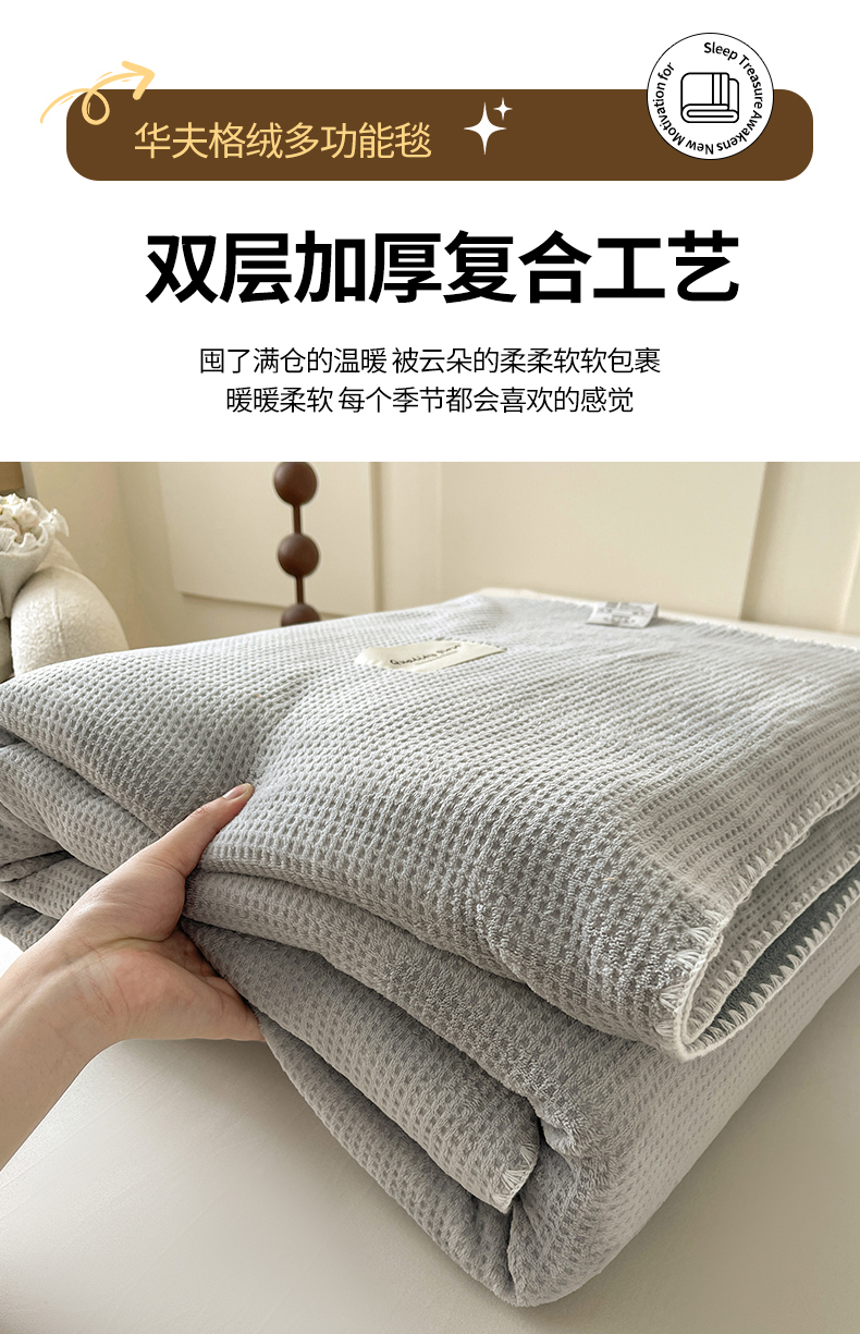 商品名称:澳梵家居 2025新款华夫格绒四季毯毛毯 时光灰