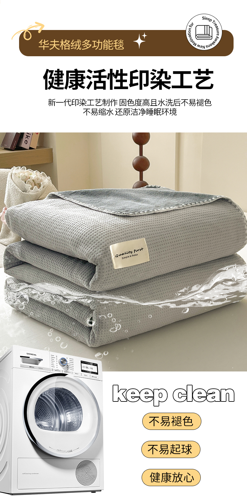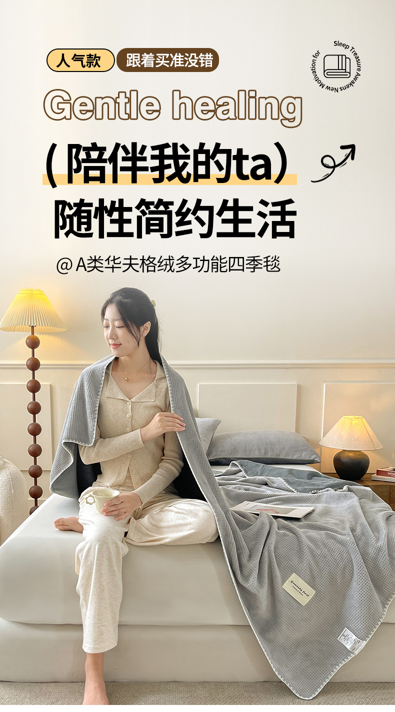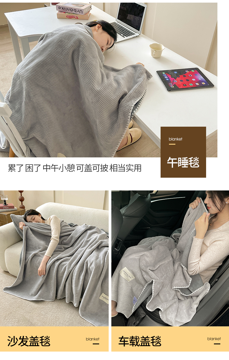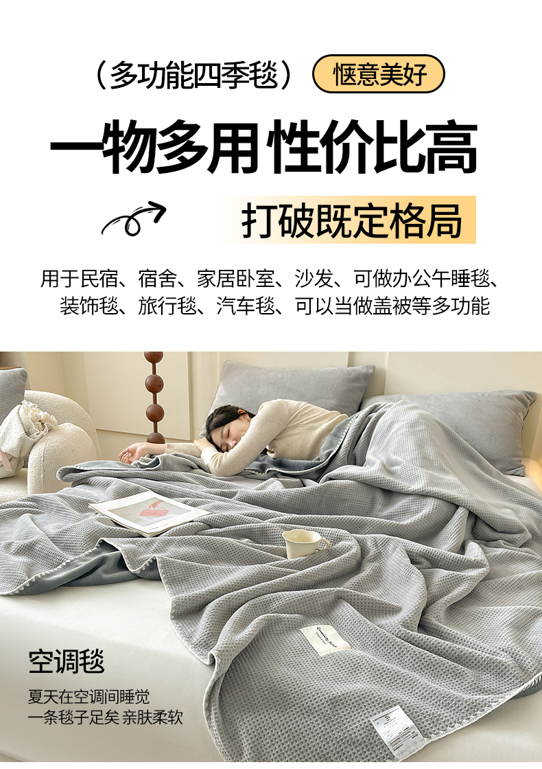 商品名称:澳梵家居 2025新款华夫格绒四季毯毛毯 时光灰