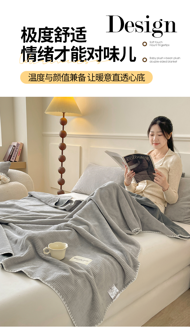 澳梵家居 2025新款华夫格绒四季毯毛毯 时光灰
