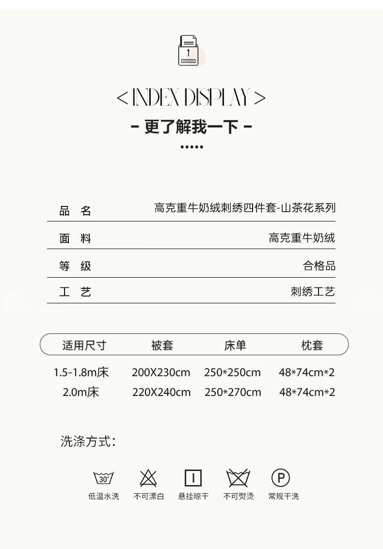(总)妮恒美家纺 2025新款高克重牛奶绒刺绣四件套-山茶花系列,山茶花-豆沙,山茶花-白奶咖,山茶花-藏蓝黑,山茶花-雾蓝,山茶花-薄荷绿,山茶花-铂金灰,山茶花-初恋橙,山茶花-安哥拉红,山茶花-海蓝灰,山茶花-焦糖橘,山茶花-柳茶绿,山茶花-嫣紫
