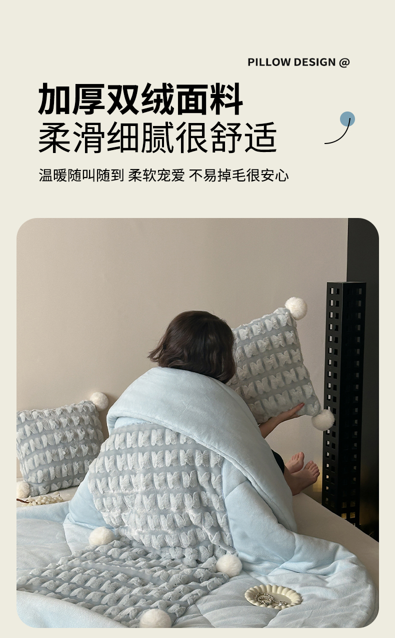(总)多米家居 2025新款毛球波波抱枕被,波波-白,波波-粉,波波-灰,波波-咖,波波-绿