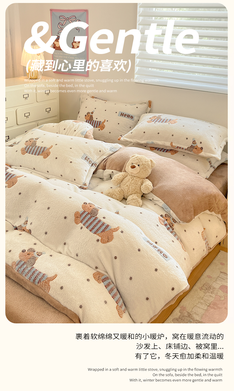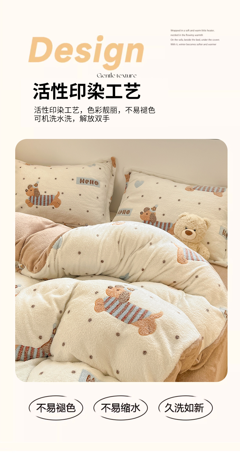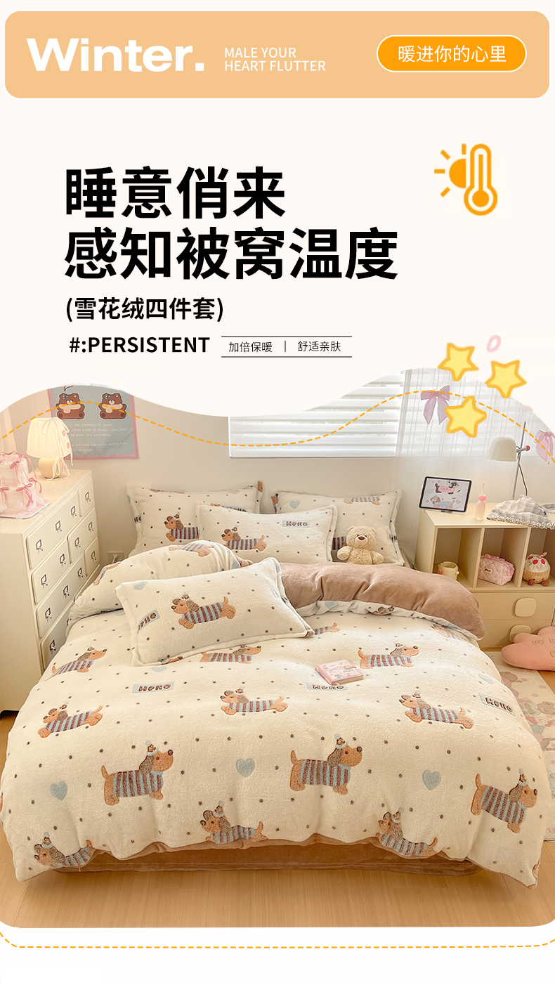 当前位置: 91家纺网 > 商品网购 > 床品套件 > 四件套 > 其它四件套 > 川悦生活 2025新款立体雪花绒印花大床四件套系列二场景一 腊肠小点