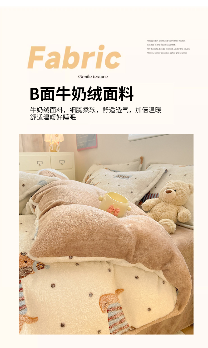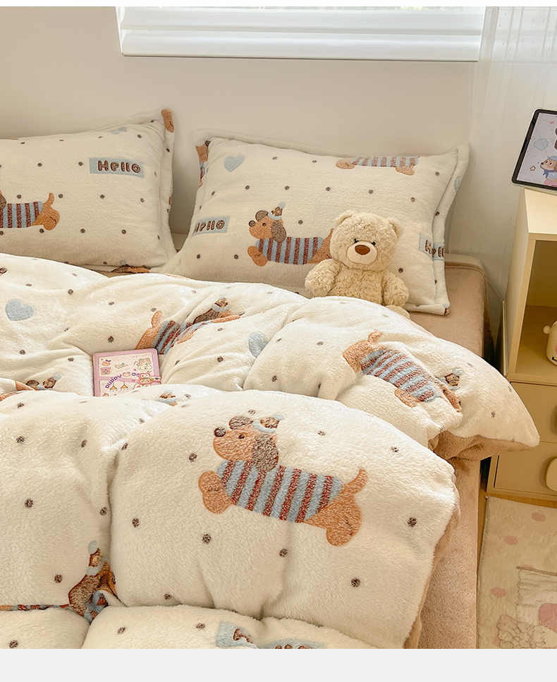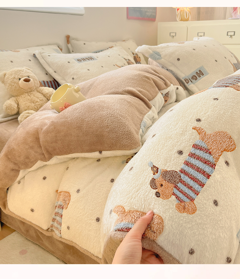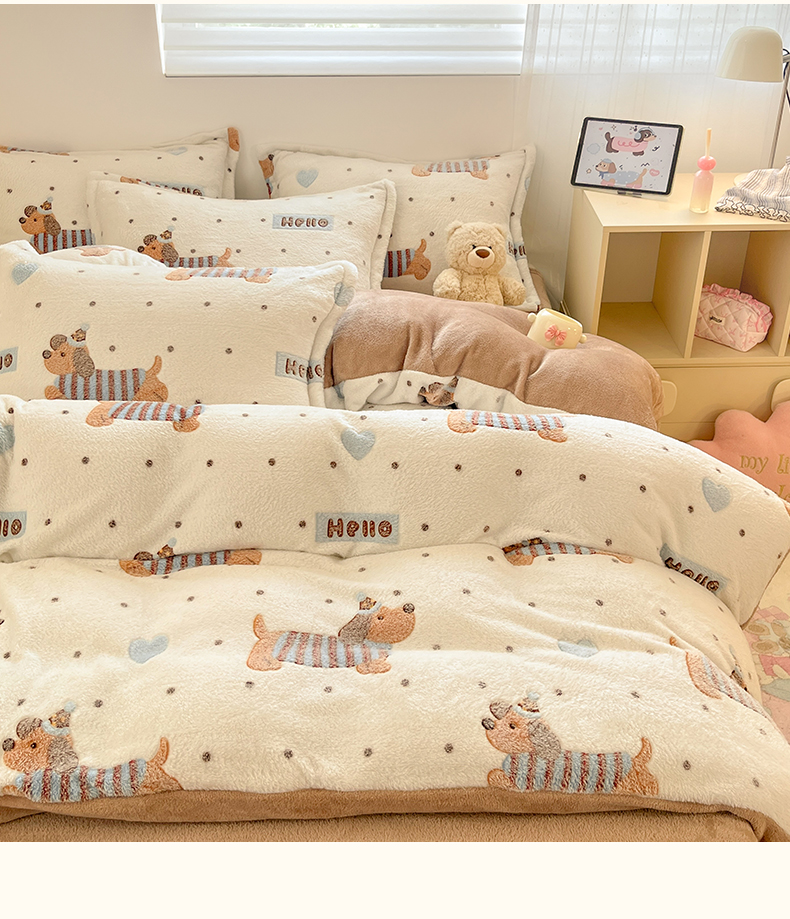 当前位置: 91家纺网 > 商品网购 > 床品套件 > 四件套 > 其它四件套 > 川悦生活 2025新款立体雪花绒印花大床四件套系列二场景一 腊肠小点