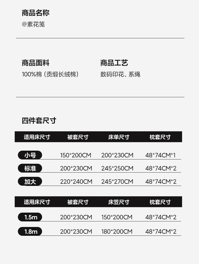 商品名称:(总)简纯主义 2025新款100%棉贡缎长绒棉四件套-素花笺