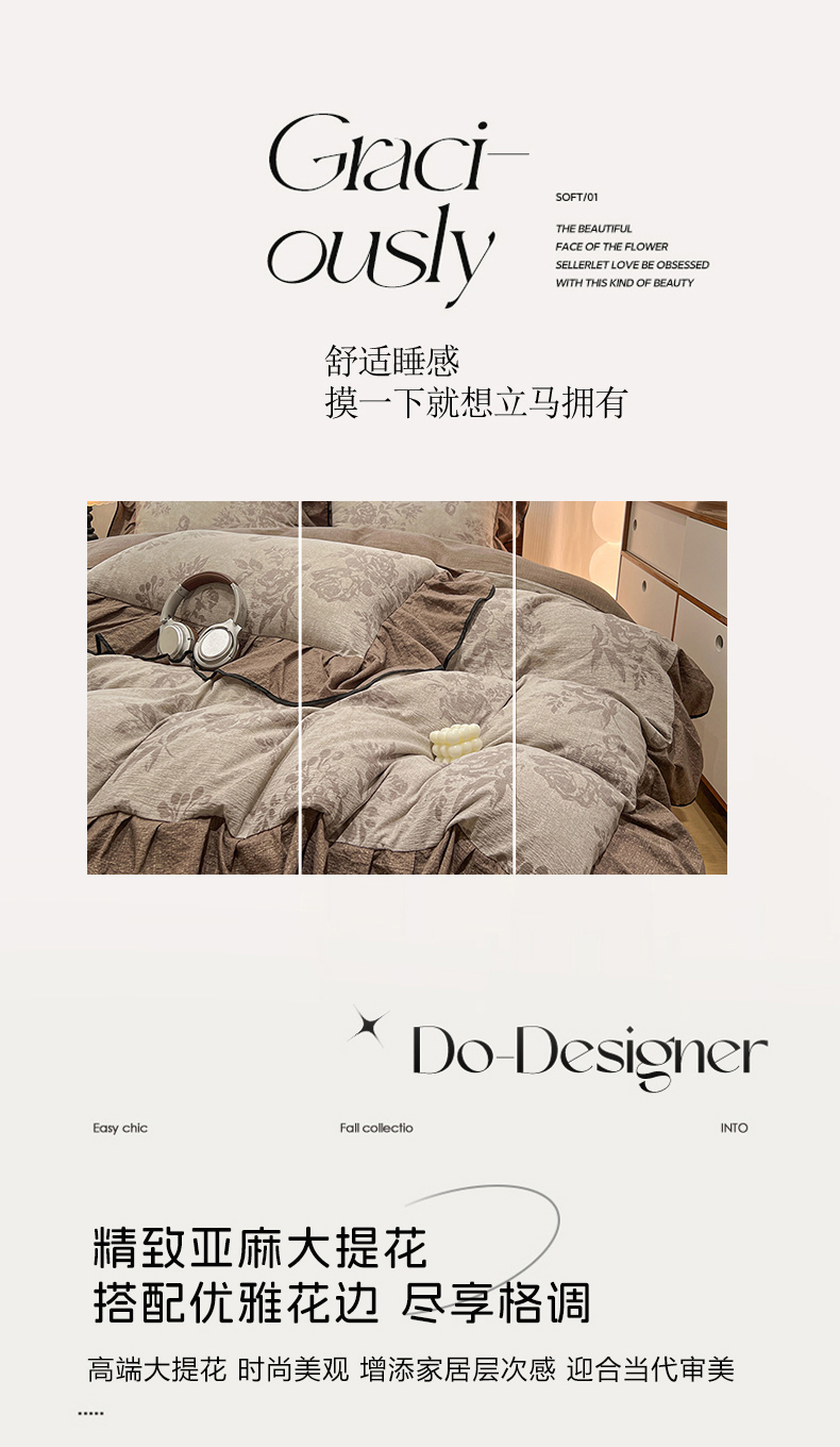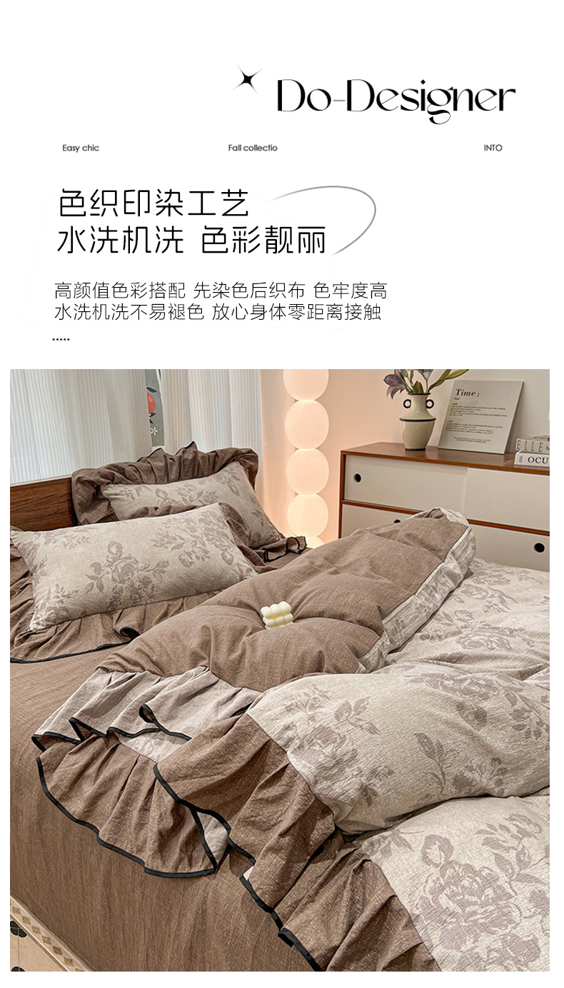 总(赛丽雅)2025秋冬新品130克加厚复古风印花磨毛四件套,风木槿,可颂,暮雪-灰,悄颜,秋恋-红,砚秋