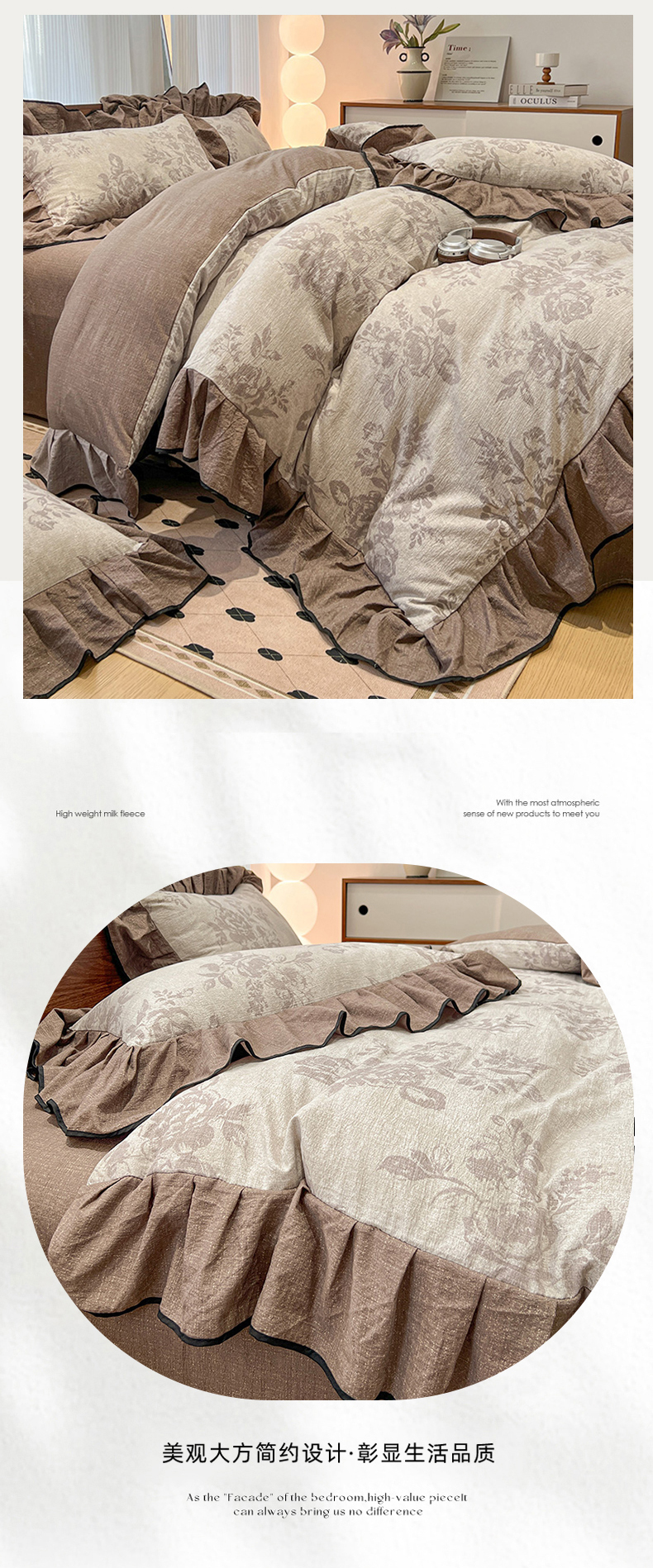 赛丽雅 2025新款牛奶绒床裙四件套8-9斤法莱绒直播爆款日产2万套 晚棠,晚棠