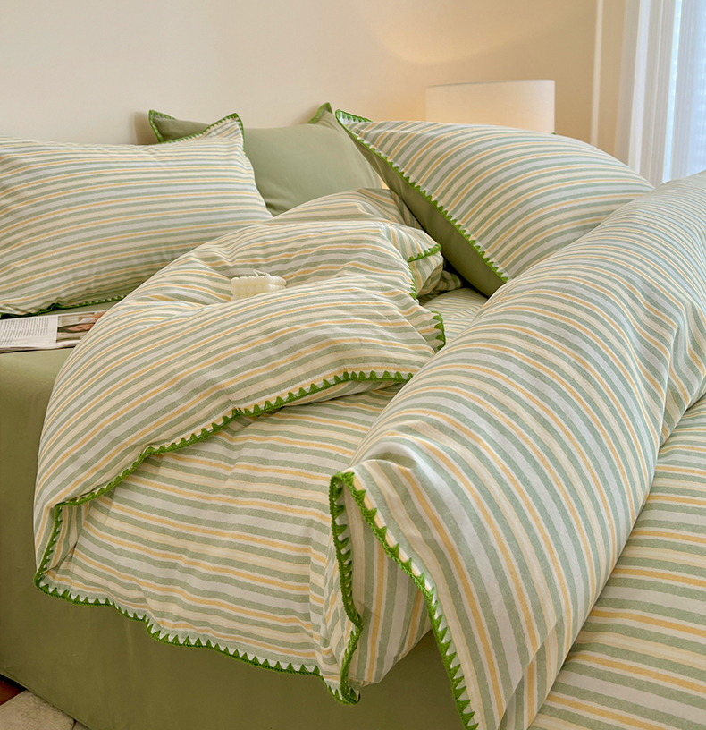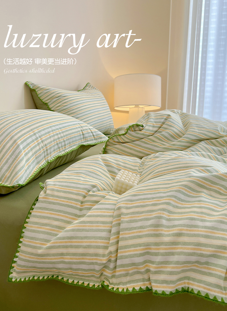 (总)忆生活家纺 2025新款全棉三层纱色织大提花条纹款四件套,初恋-樱花粉,初恋-宝石蓝,初恋-抹茶绿,初恋-奶咖色,初恋-太空灰