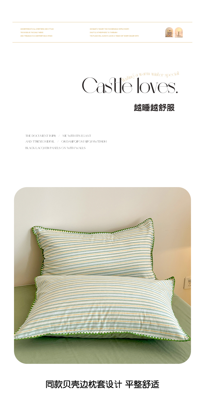 忆生活 2025秋冬全棉加厚磨毛贝壳边四件套夏末-绿