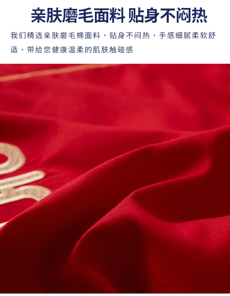 丰淘家纺 2025新款婚庆结婚磨毛刺绣大红枕套 吾家有喜