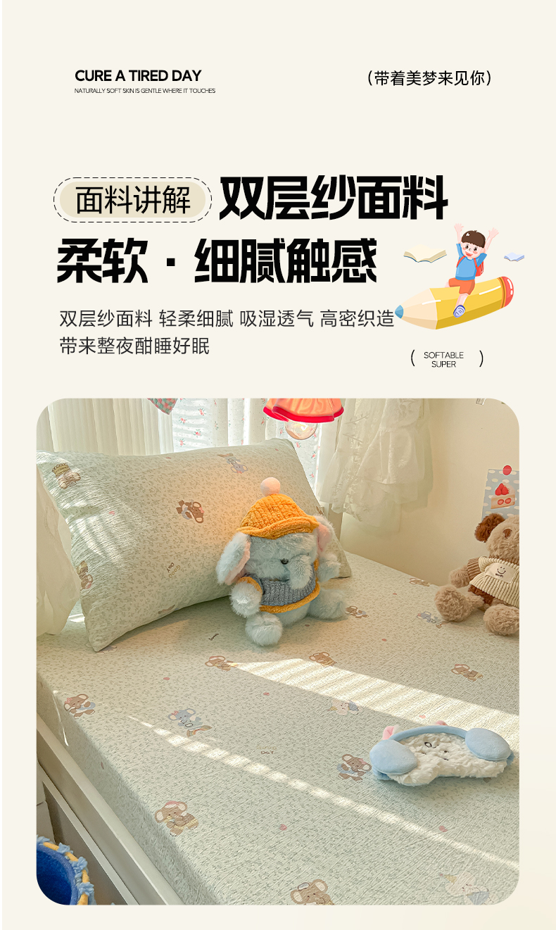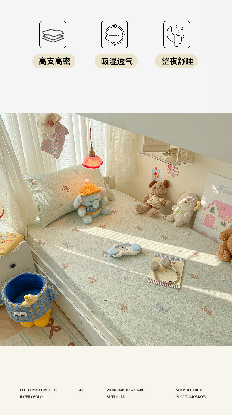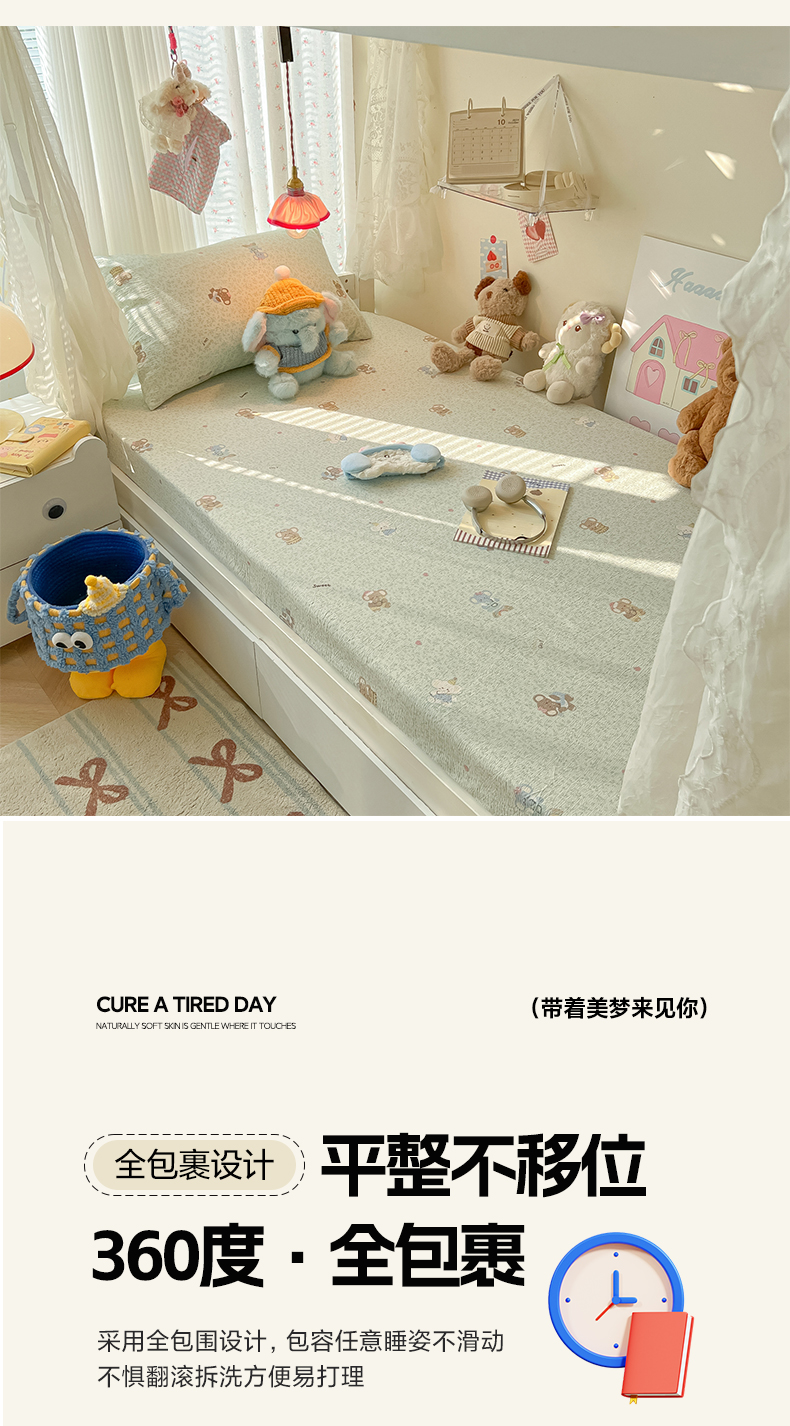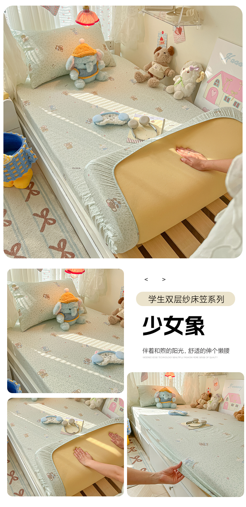 韩巢家纺 2025新款A类学生宿舍上下铺床笠单件床垫保护罩枕套三件套 少女象