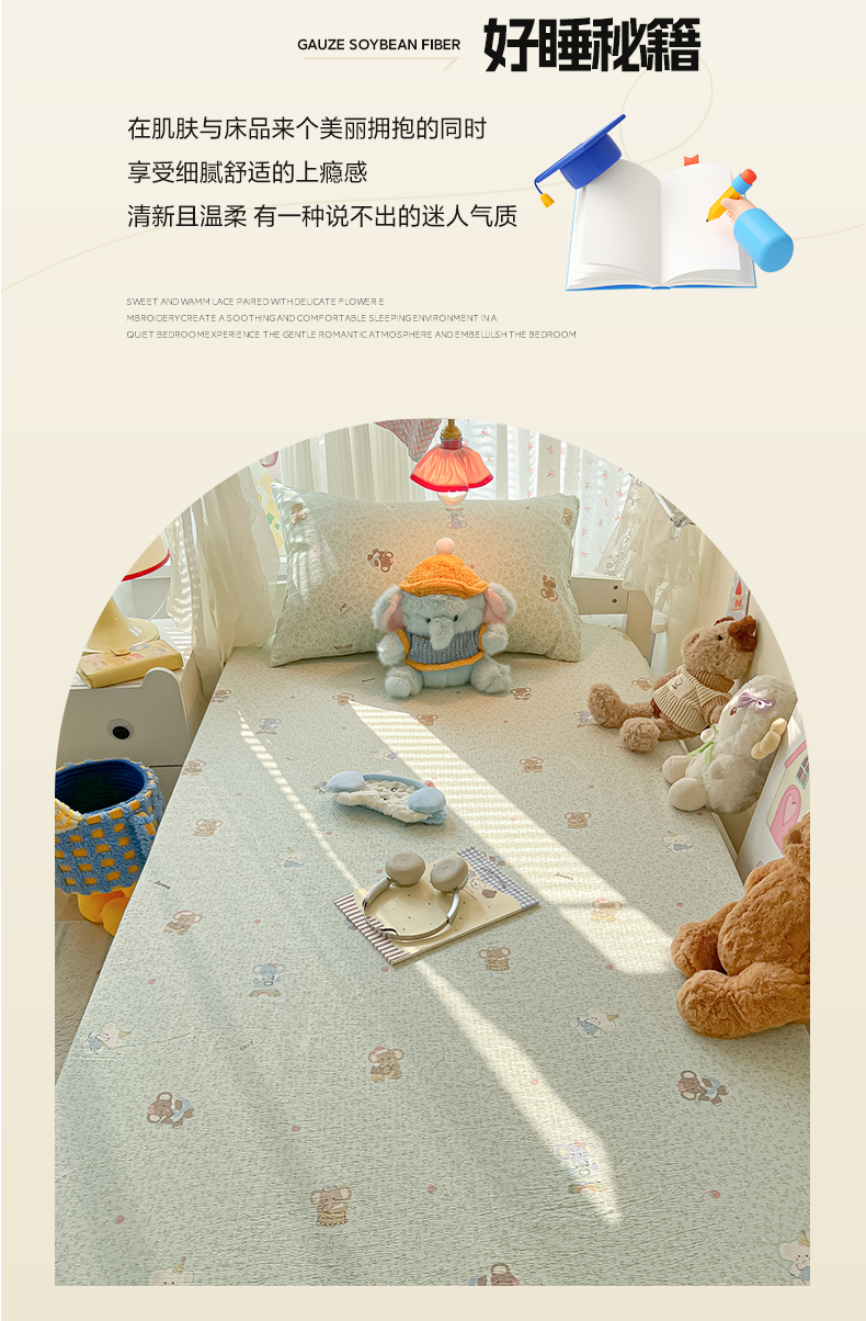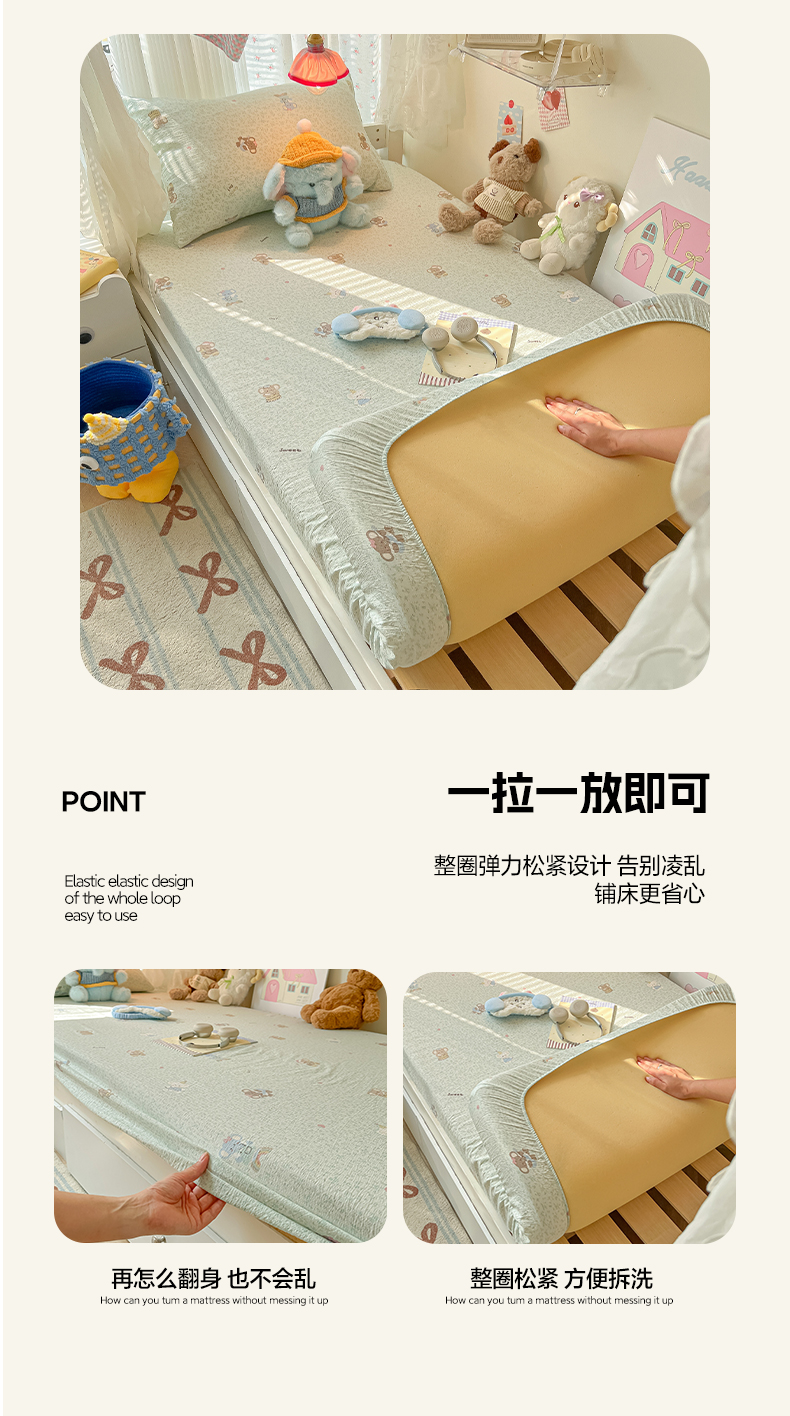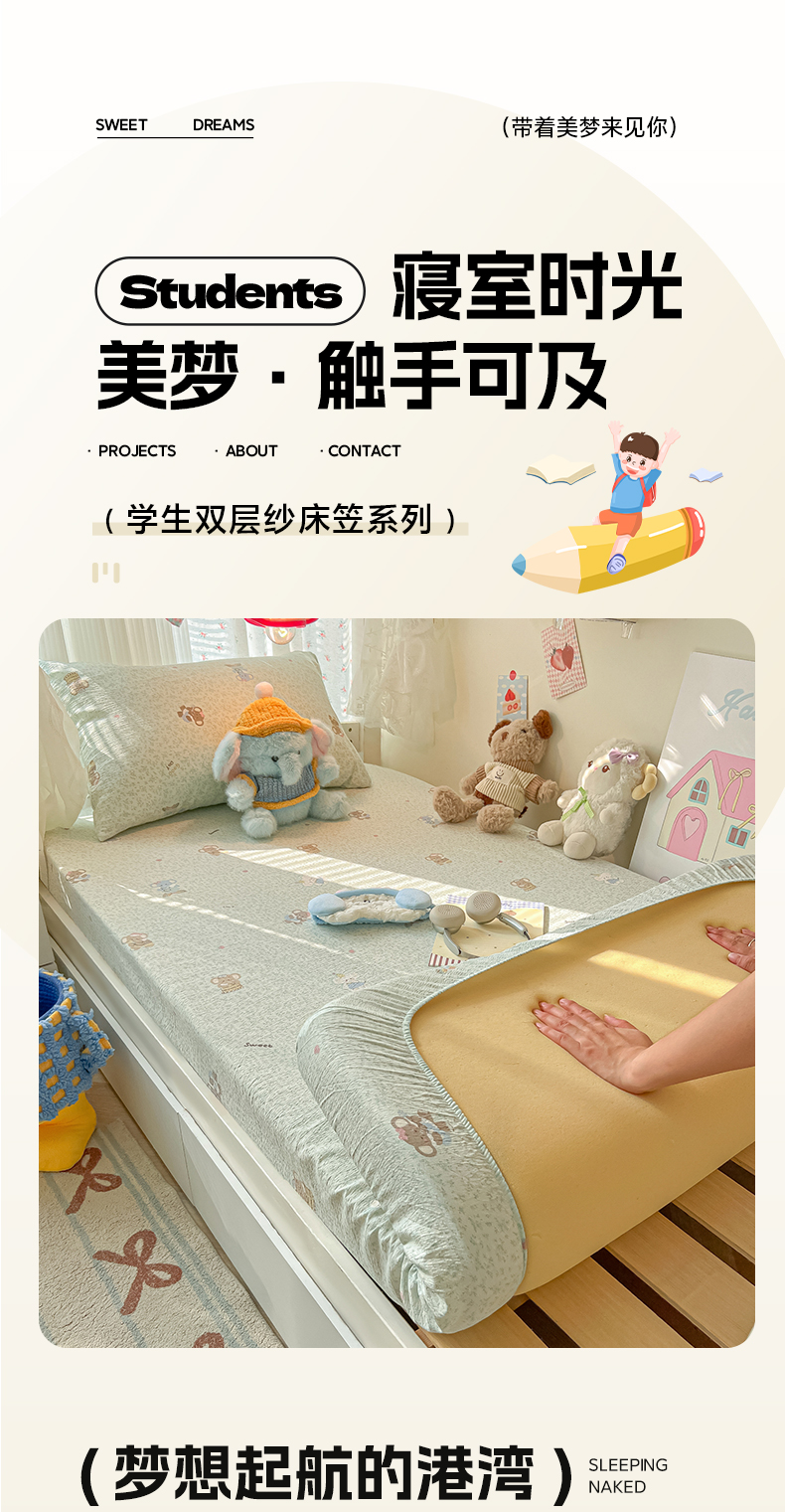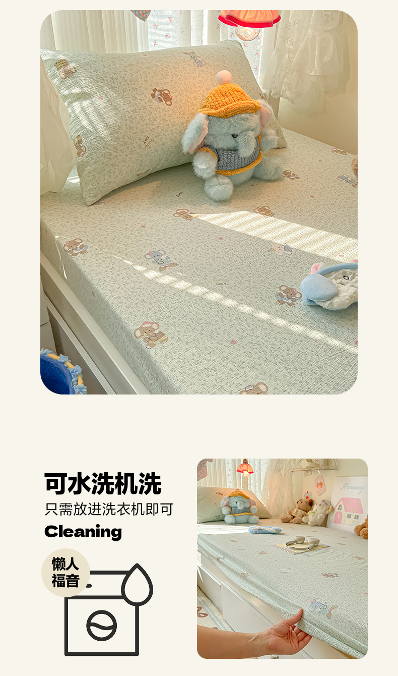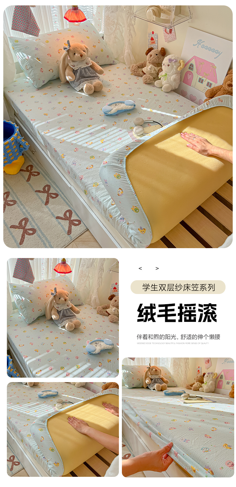 • 91家纺网 家纺一手货源 找家纺 韩巢家纺 2025新款A类学生宿舍上下铺床笠单件床垫保护罩枕套三件套 少女象