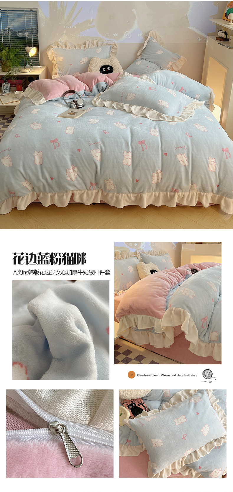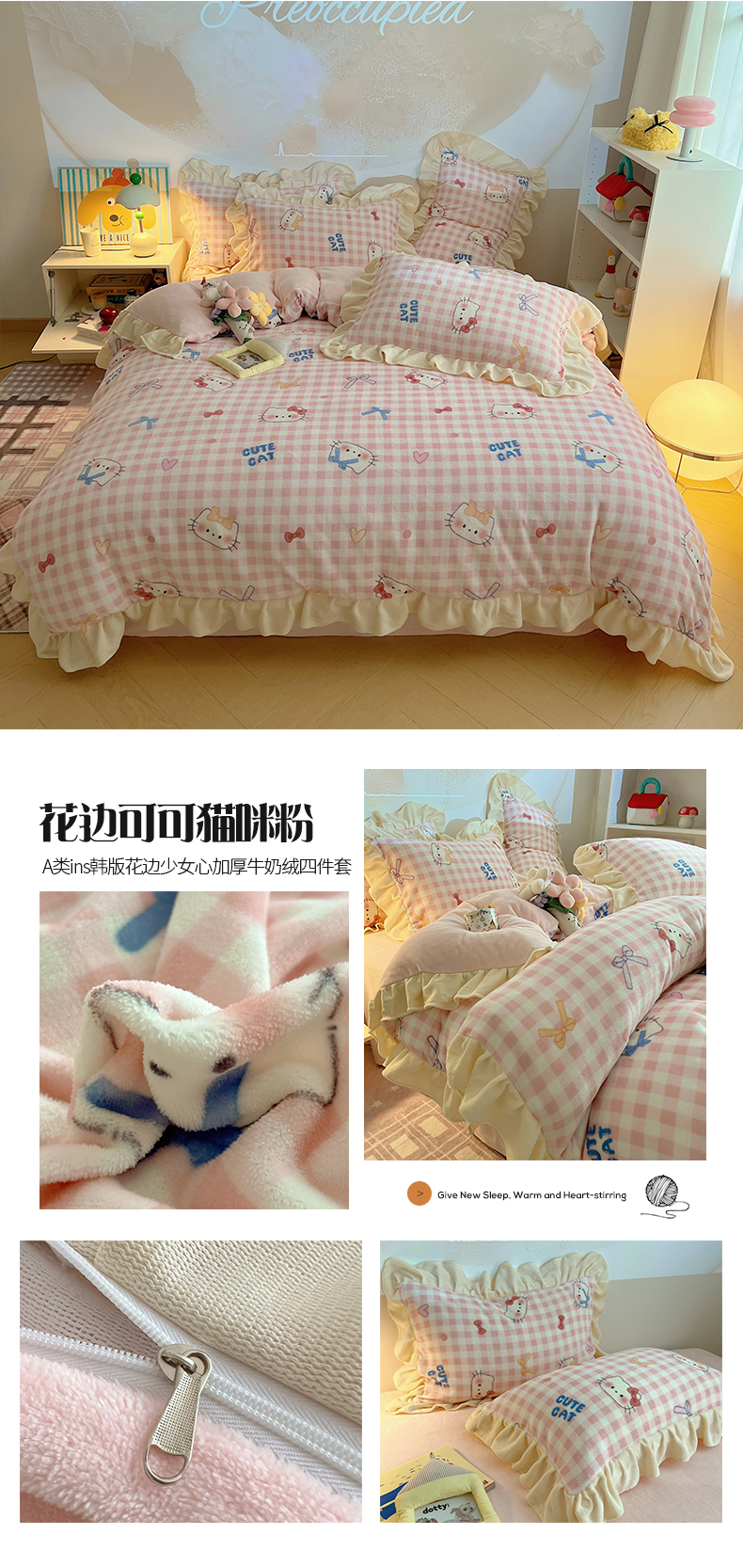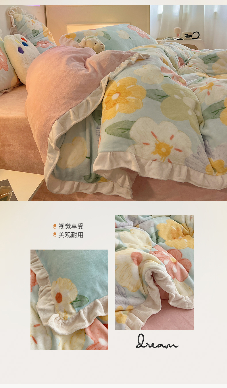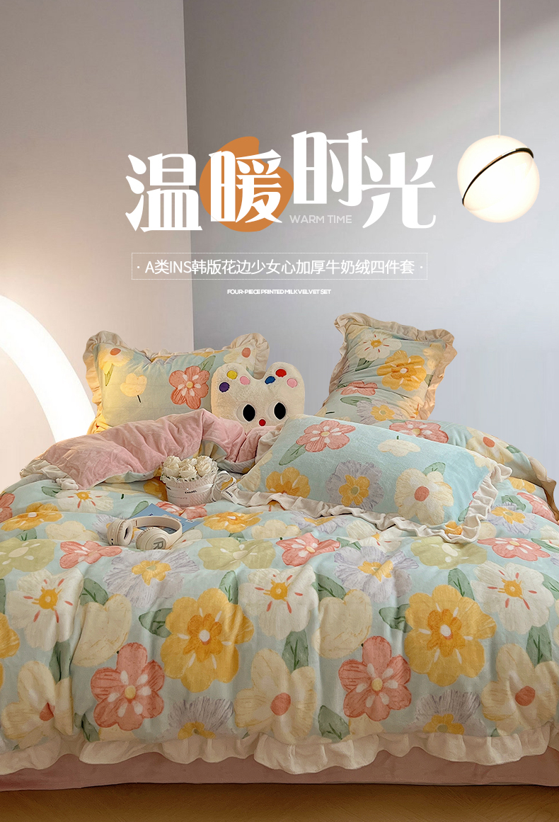 当前位置: 91家纺网 > 商品网购 > 床品套件 > 四件套 > 牛奶绒四件套 > 桃子家居 2025新款A类ins韩版花边少女心可爱卡通碎花加厚牛奶绒四件套 绒-花边花儿多多
