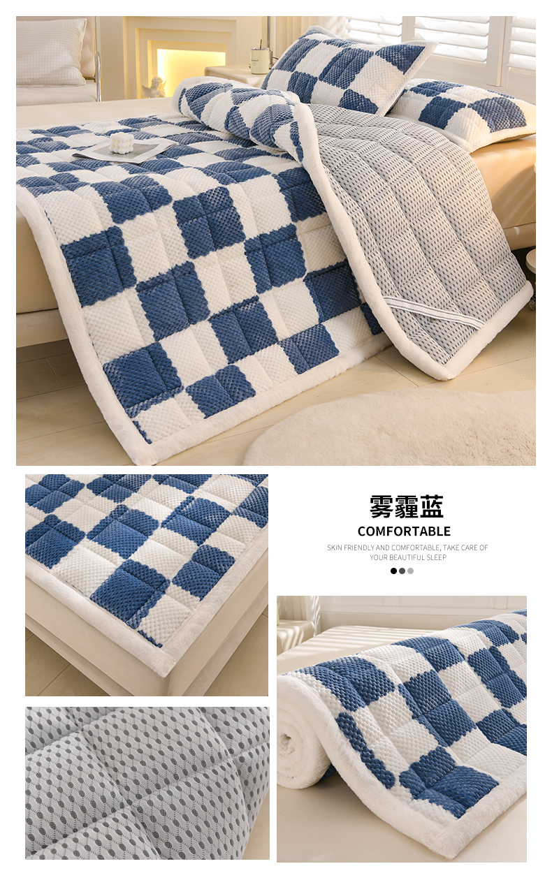(总)云木里 2025新款A版牛奶绒B版菠萝格夹棉绗绣三层毯盖毯毯子,格子恐龙,好看女孩,灰蓝,灰色,卡其,墨绿,奶黄,浅粉,浅蓝,秋风绿,小猫鱼,中格灰