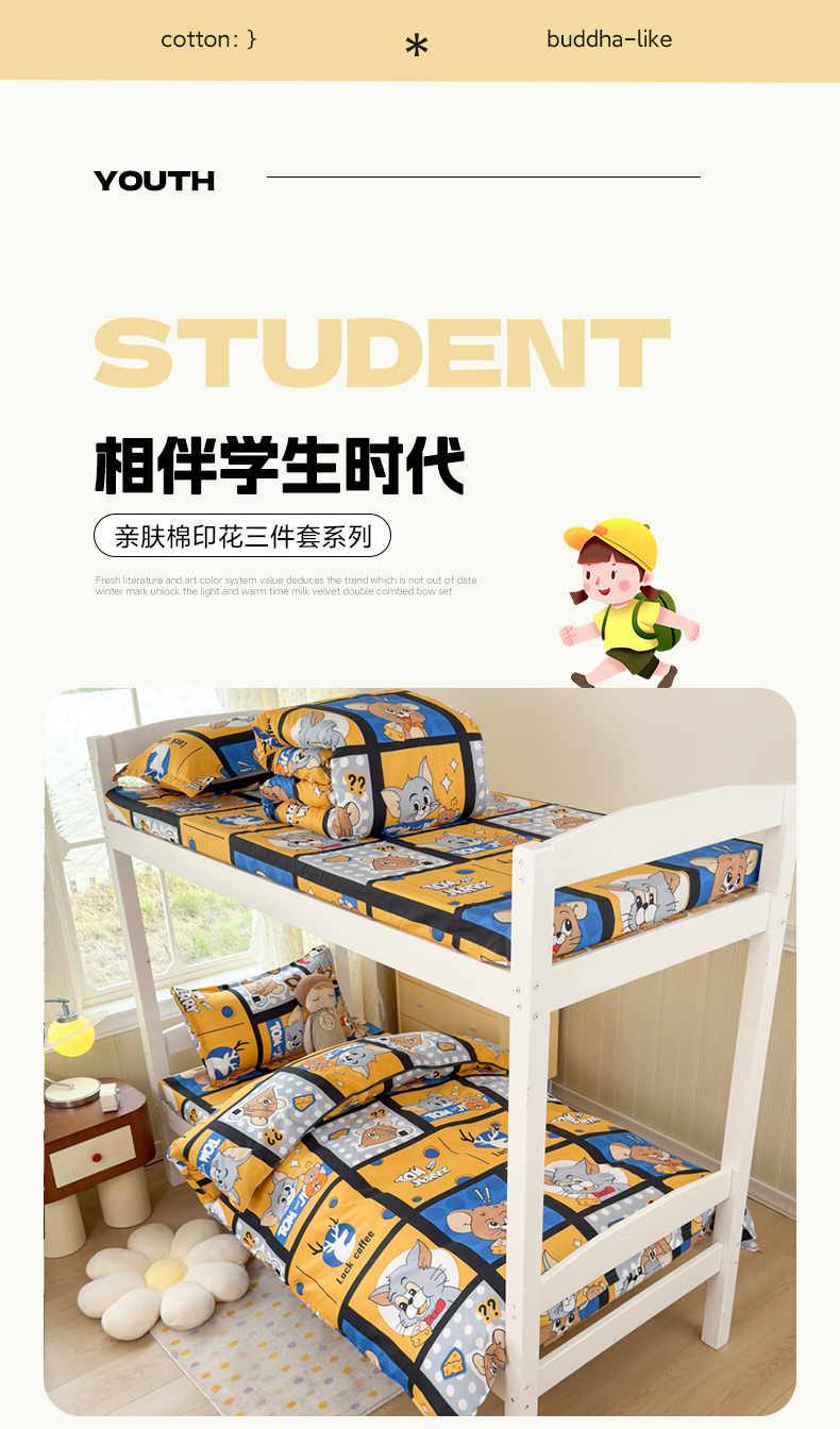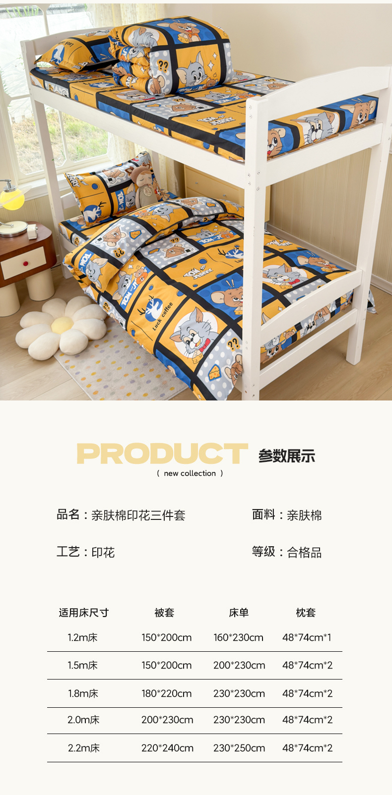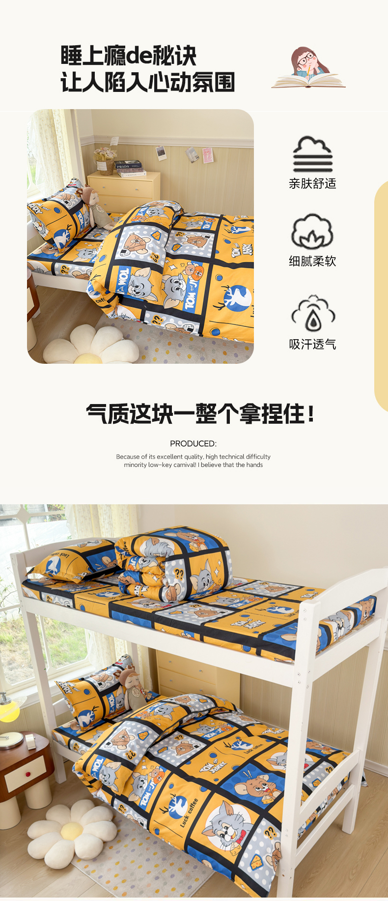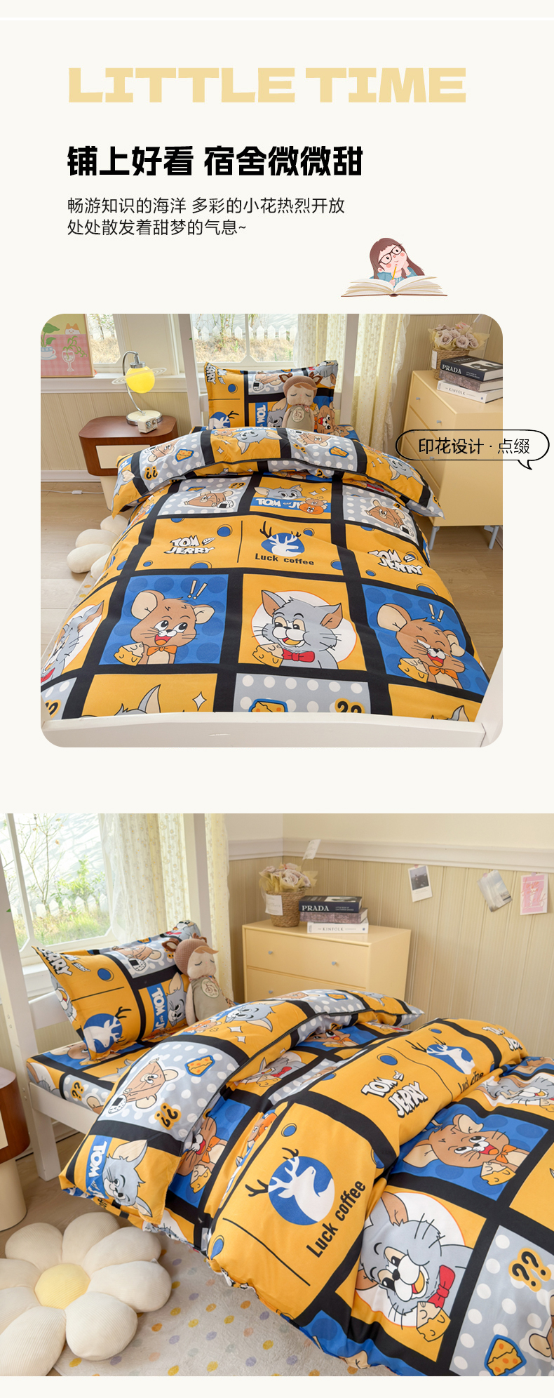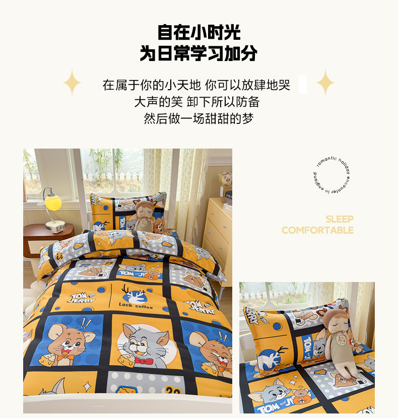 当前位置: 91家纺网 > 商品网购 > 床品套件 > 四件套 > 其它四件套 > 乐居坊 2025新款开学季亲肤棉透气印花芦荟棉四件套(宿舍床) 汤姆与杰瑞