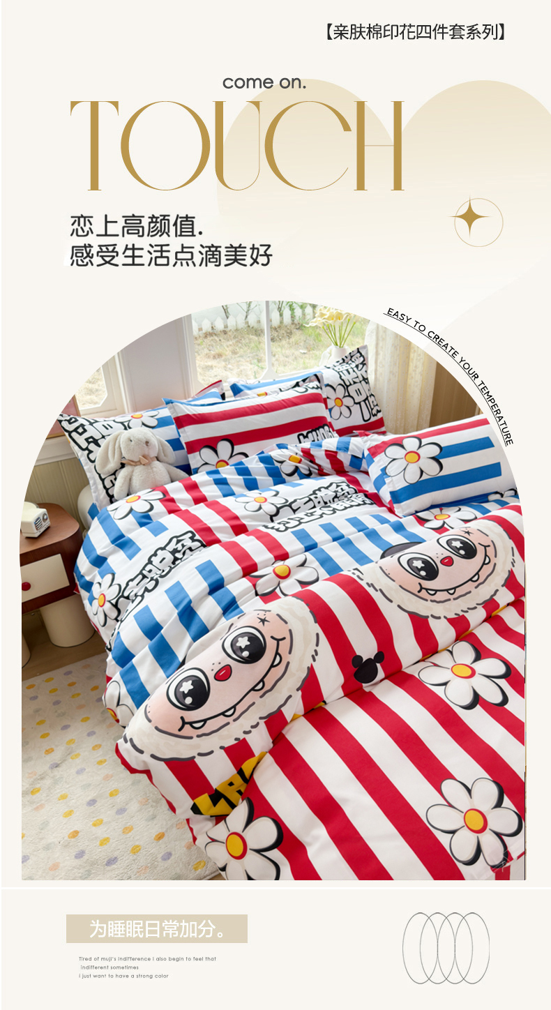 当前位置: 91家纺网 > 商品网购 > 床品套件 > 四件套 > 其它四件套 > 乐居坊 2025新款开学季亲肤棉透气印花芦荟棉四件套(大床) 潮流前线