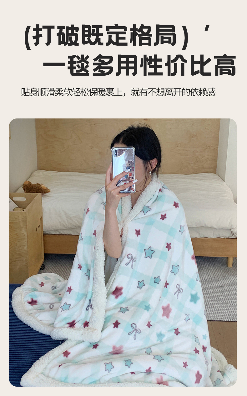 商品名称:桃喜 2025新款牛奶绒羊羔绒毛毯 羊羔绒-馥郁蓝
