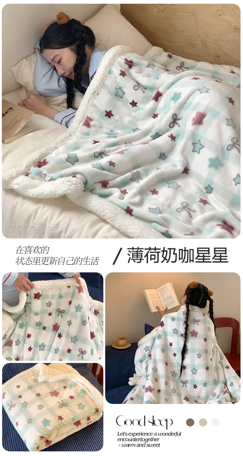 (总)桃喜 2024新款牛奶绒羊羔绒条纹系列盖绒毛毯午休毯多功能毛毯-场景二,多巴胺彩条,蓝咖条纹,栗子粉条纹,美式复古红蓝条,美式复古黄蓝条