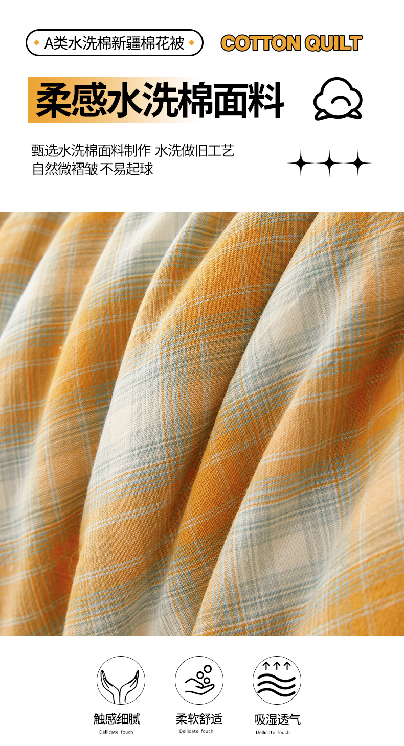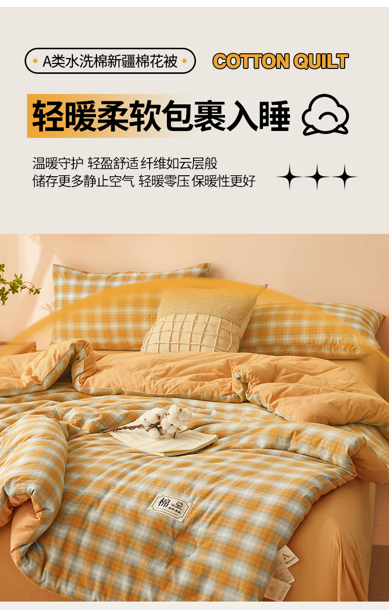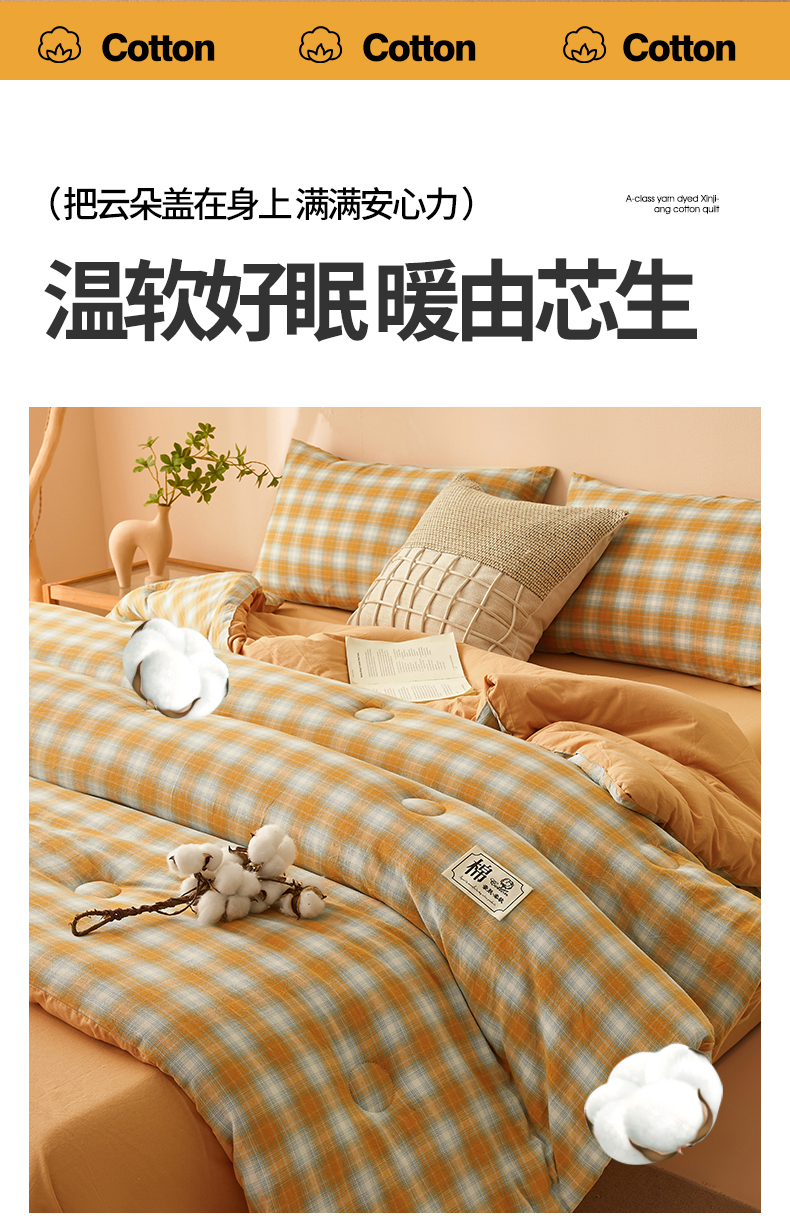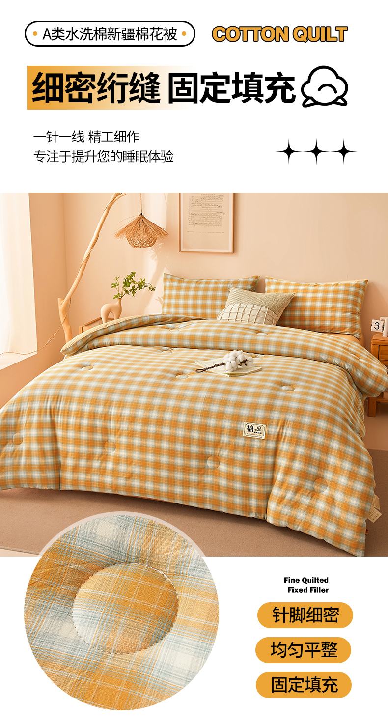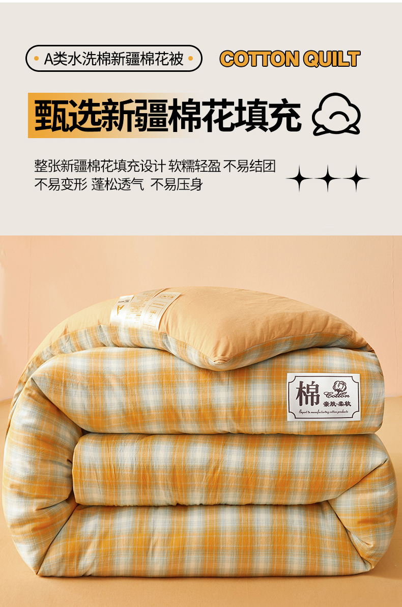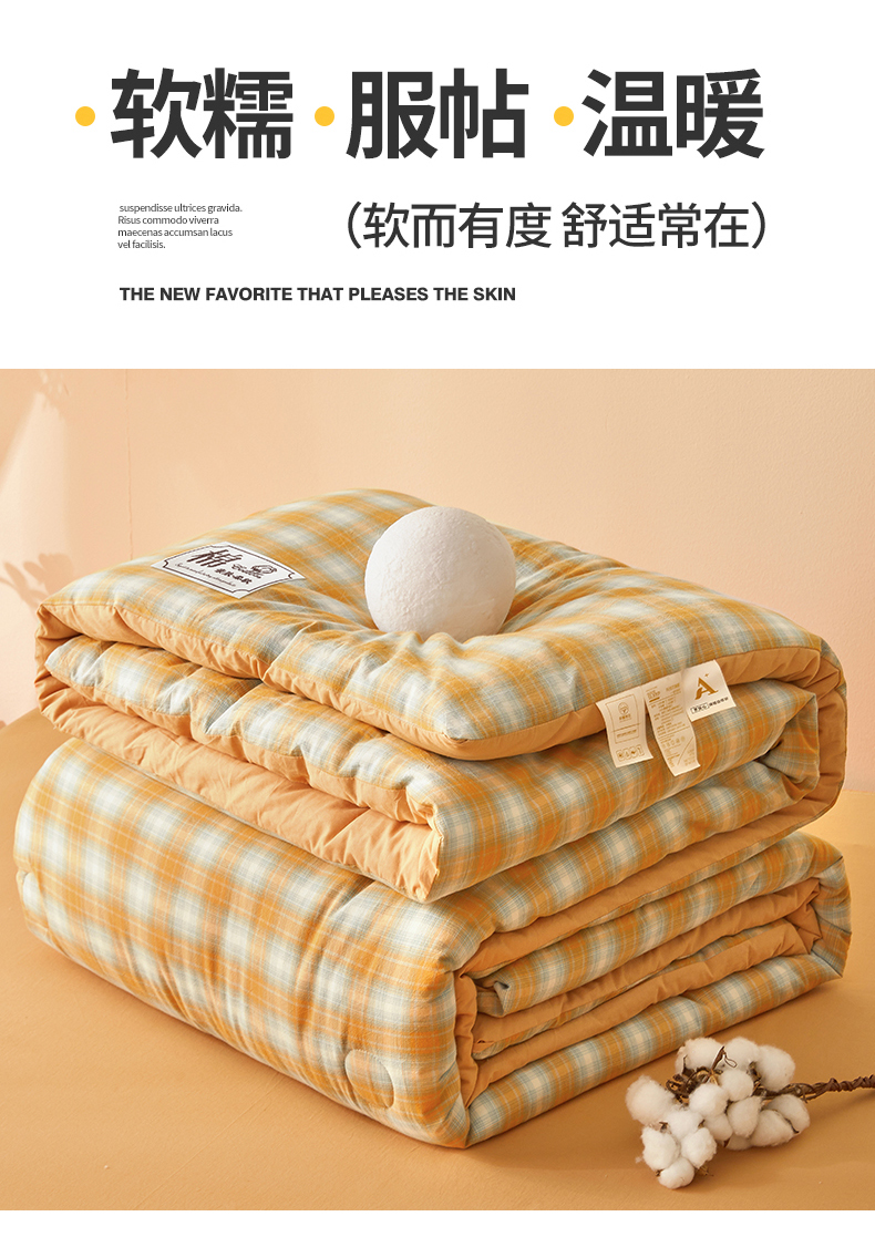 • 91家纺网 家纺一手货源 找家纺 晓时候 2025新款A类水洗棉冬被新疆棉花被夏被春秋被四季被子被芯 韶华桔