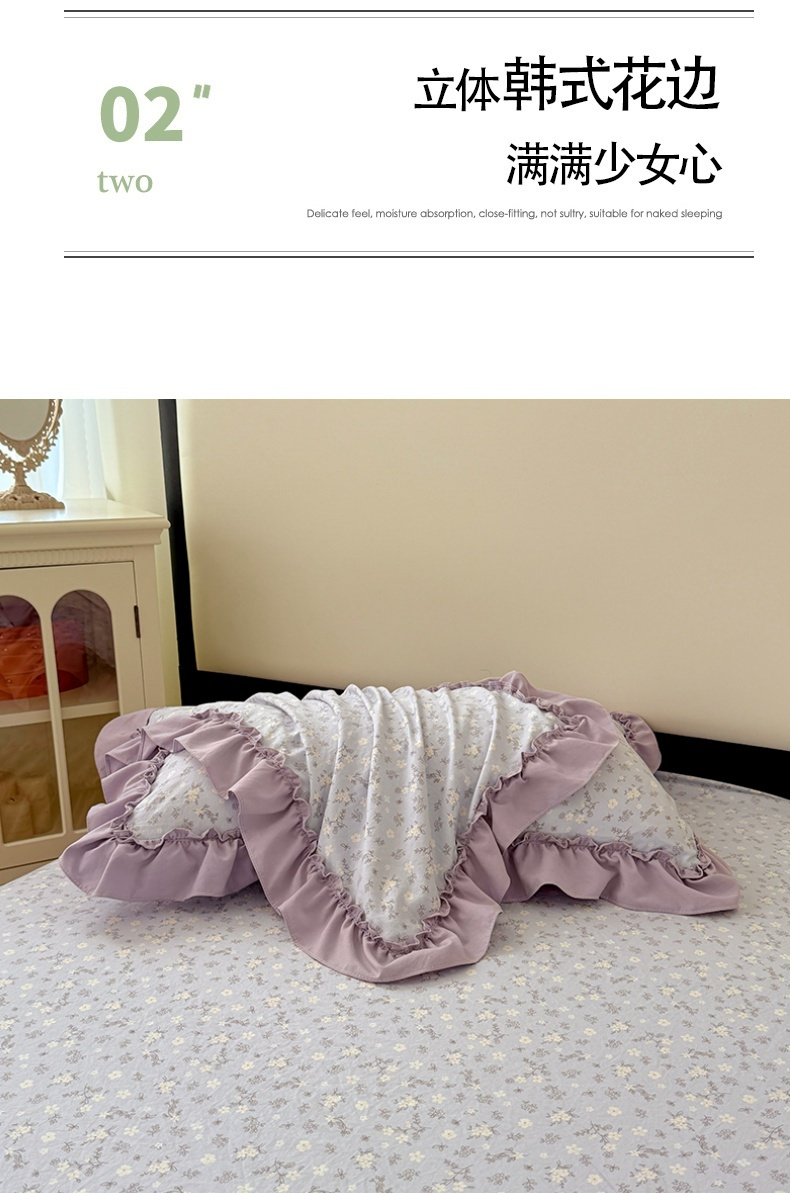 商品名称:圣比熊 2025新款水洗珍珠棉花边枕套宿舍单人学生一对装枕芯内胆套 花未眠-紫