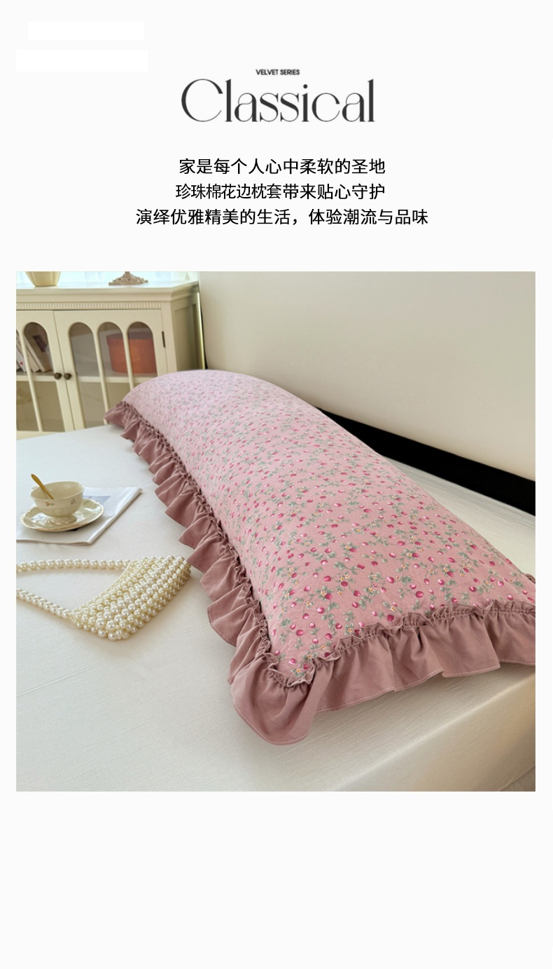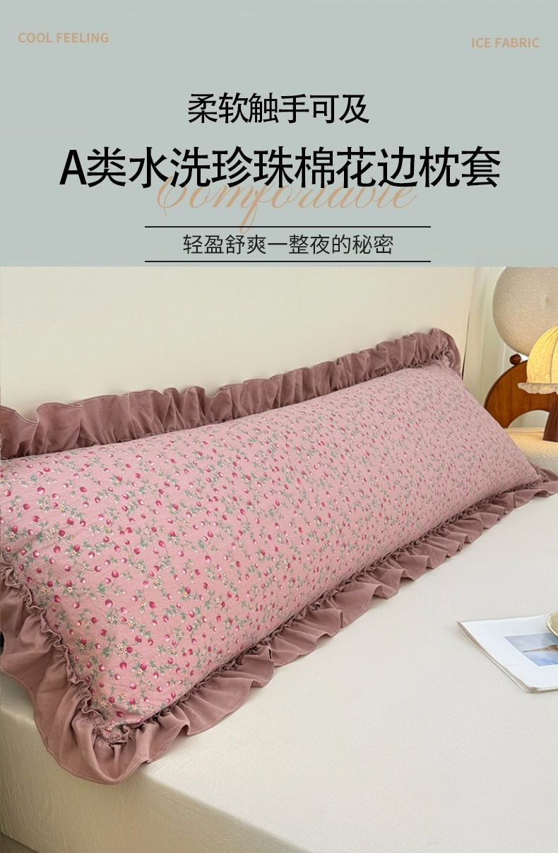 商品名称:圣比熊 2025新款水洗珍珠棉花边枕套加长双人情侣1.8米枕芯内胆套1.5m枕头套 樱桃季