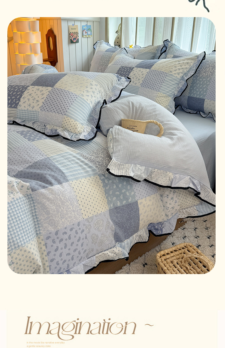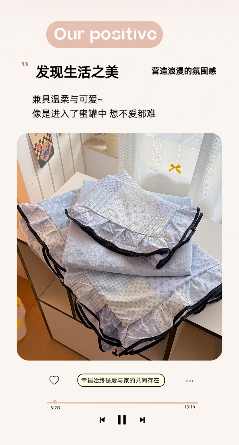 当前位置: 91家纺网 > 商品网购 > 床品套件 > 四件套 > 双层纱四件套 > 艾特你 2025新款云感皱皱双层纱黑色包边四件套 黑边-半亩花田
