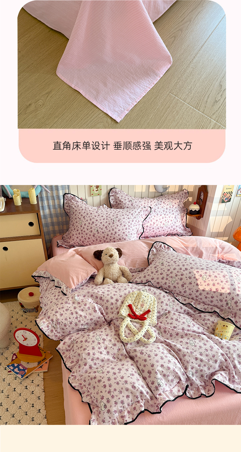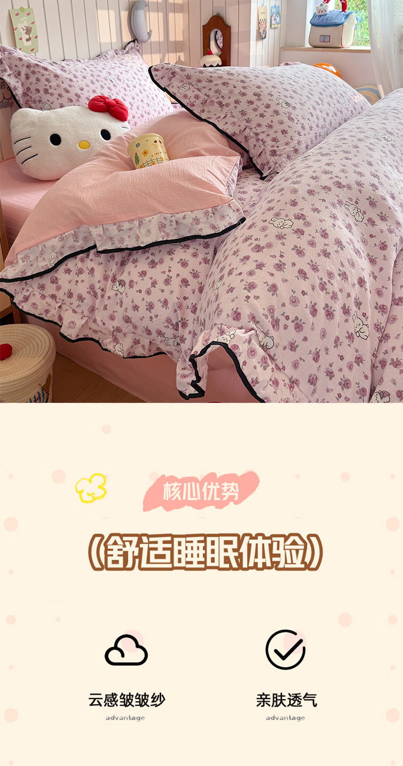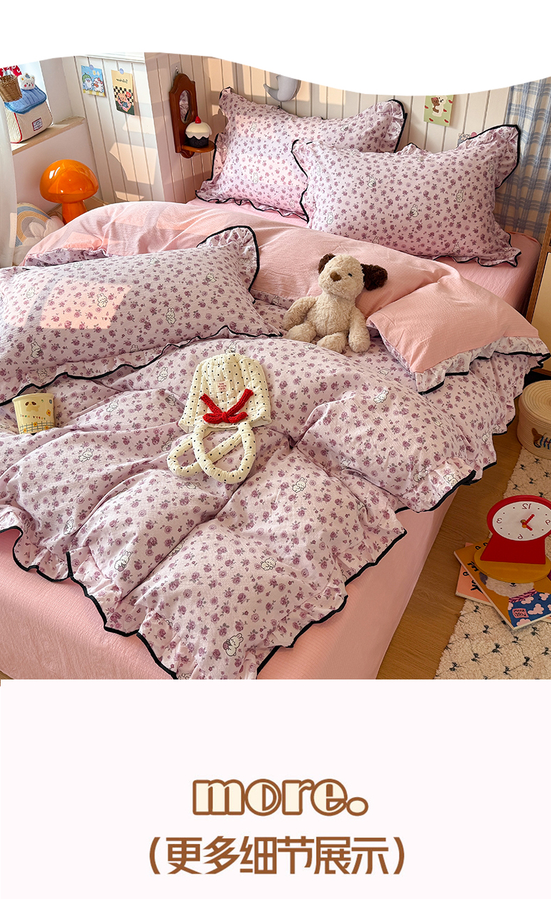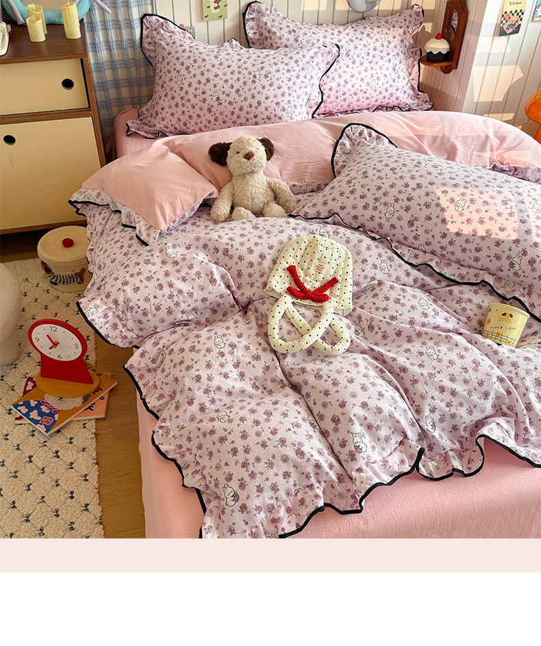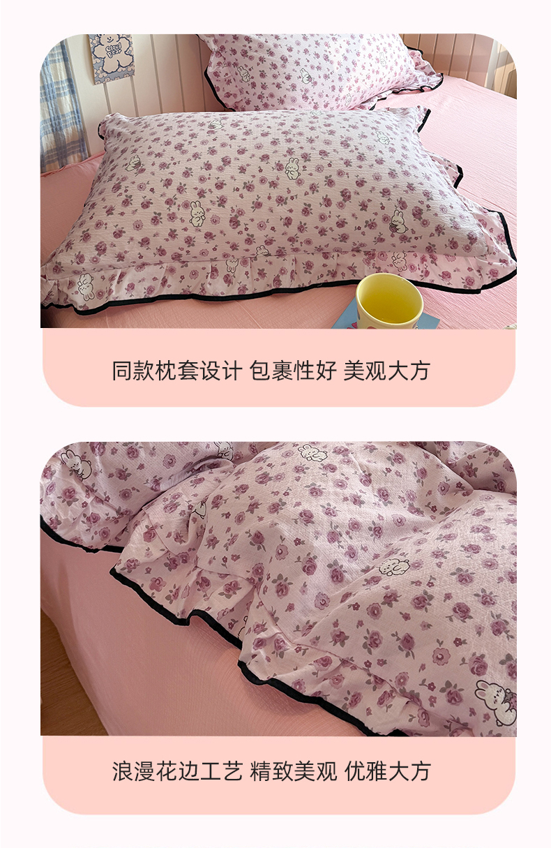 当前位置: 91家纺网 > 商品网购 > 床品套件 > 四件套 > 双层纱四件套 > 艾特你 2025新款云感皱皱双层纱黑色包边四件套 黑边-甜兔碎花