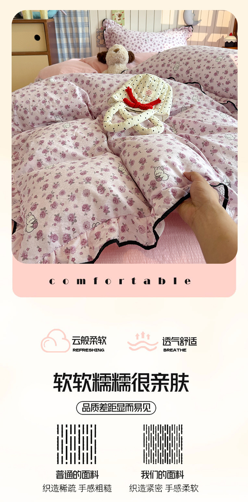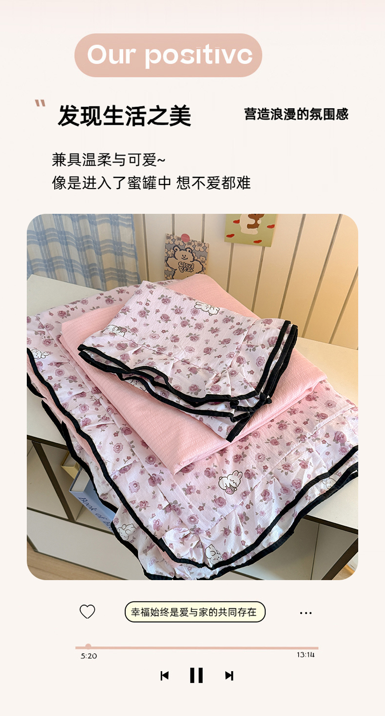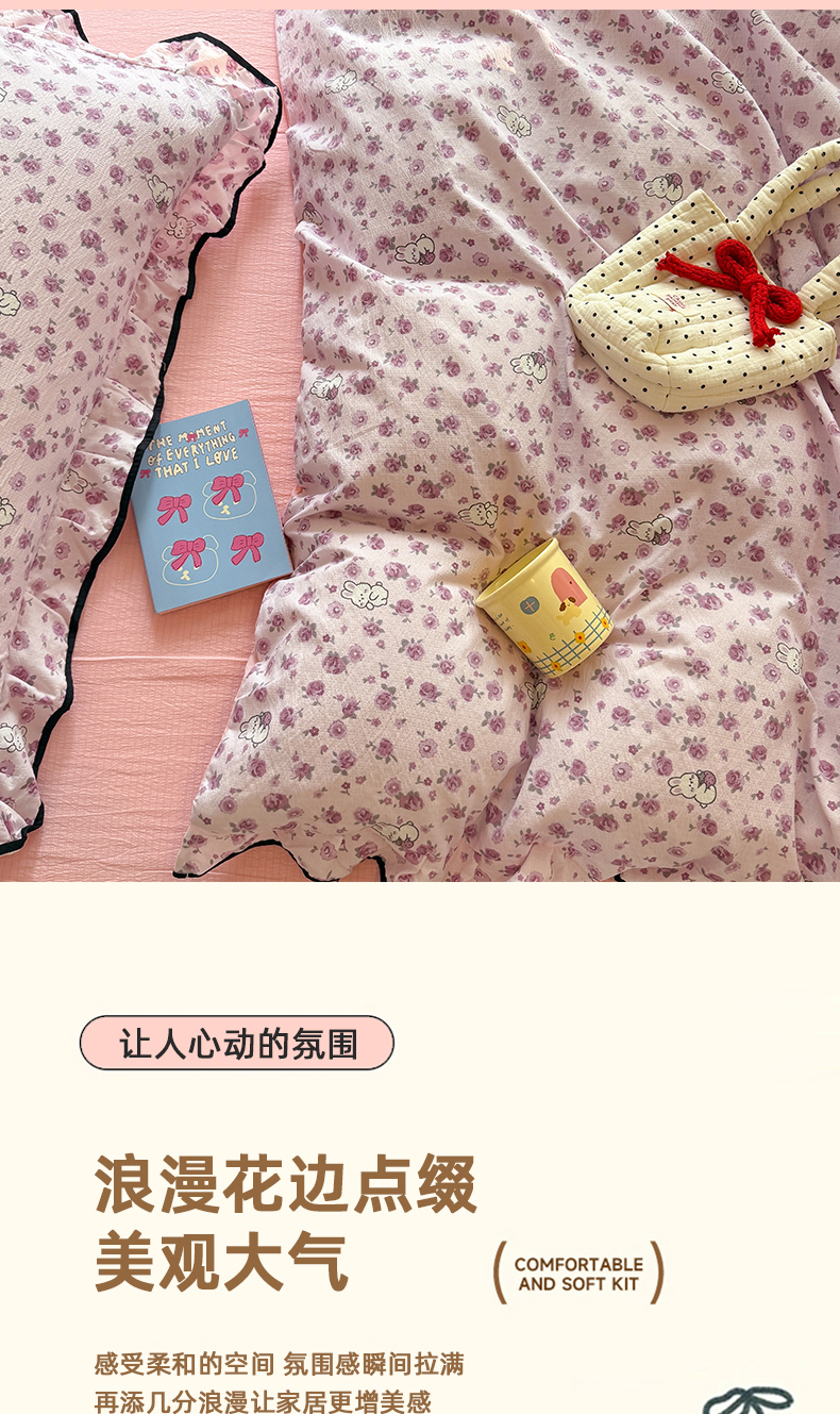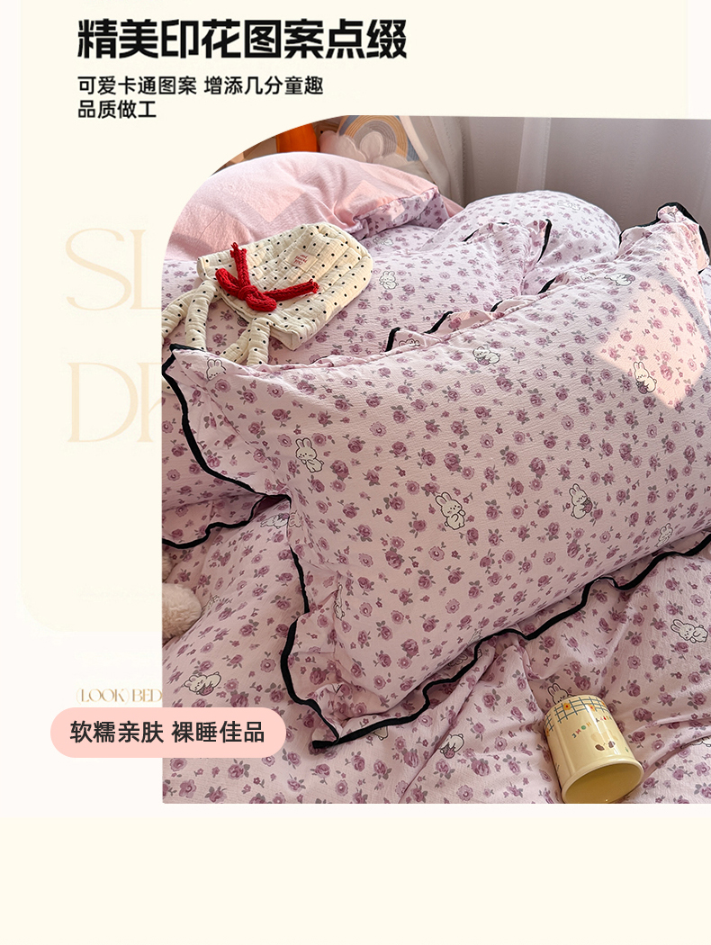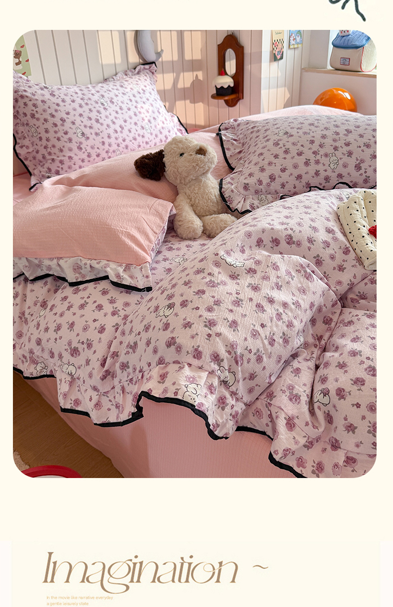 当前位置: 91家纺网 > 商品网购 > 床品套件 > 四件套 > 双层纱四件套 > 艾特你 2025新款云感皱皱双层纱黑色包边四件套 黑边-甜兔碎花