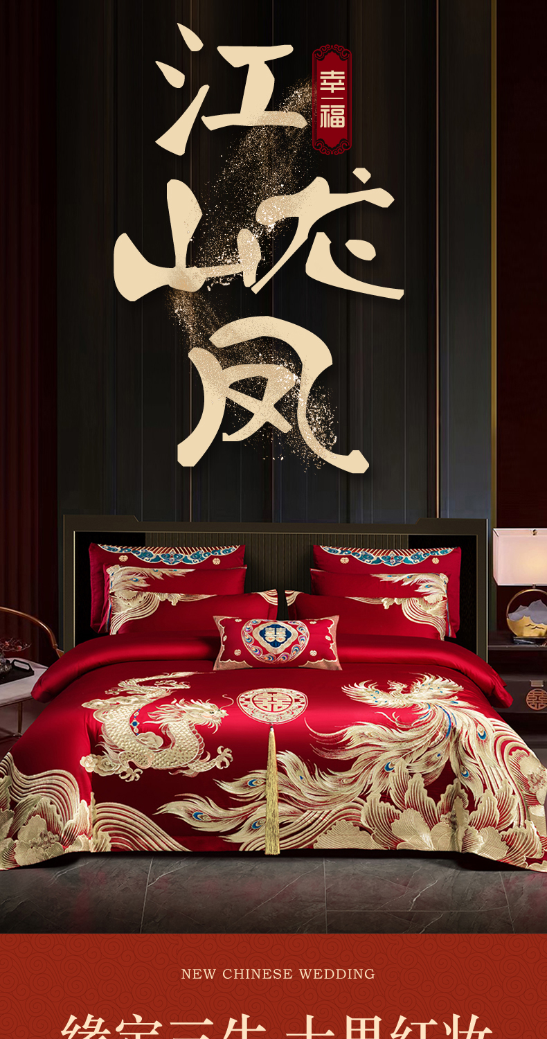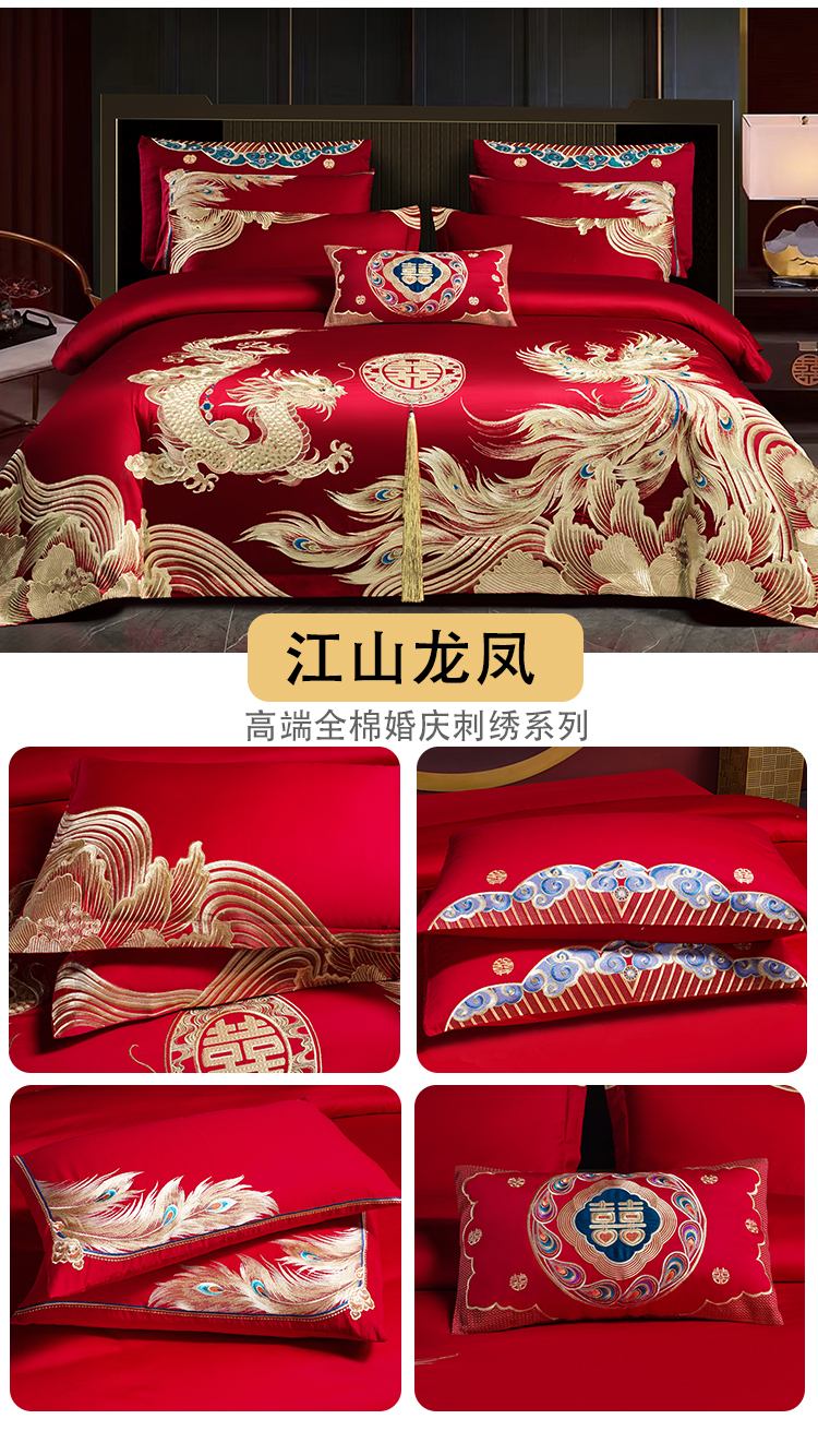 当前位置: 91家纺网 > 商品网购 > 床品套件 > 四件套 > 婚庆四件套 > 用心 2025新款婚庆全棉刺绣四件套多件套系列江山龙凤