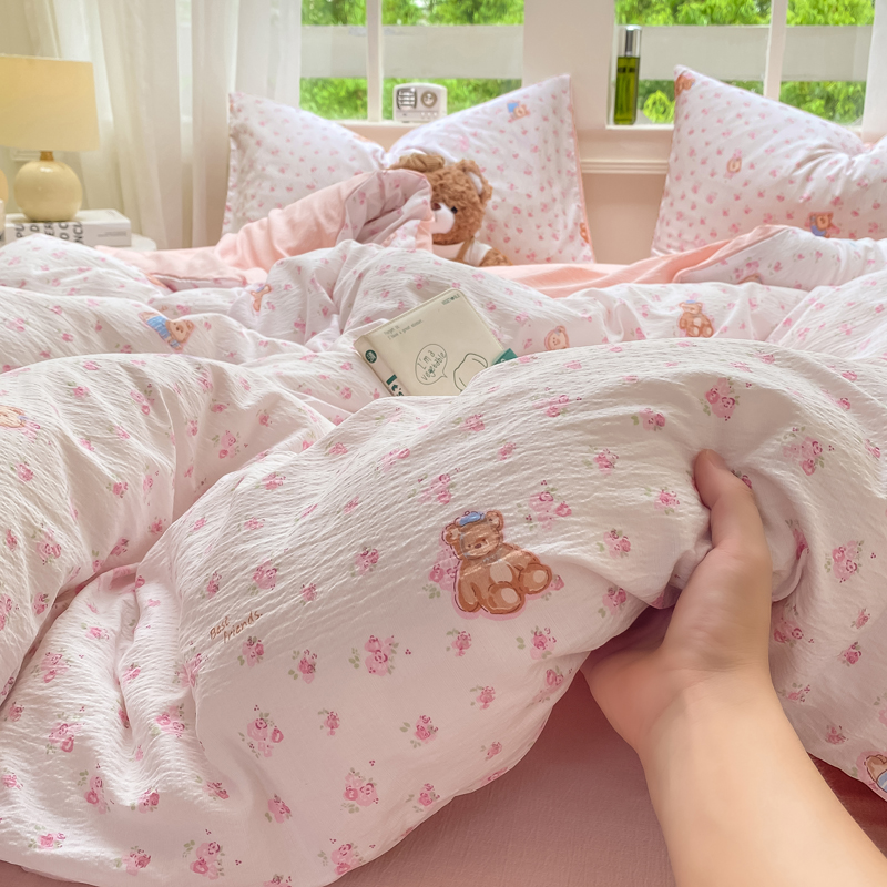 商品名称:朵朵家纺 2025新款云感提花双层纱印花单品被套 情人节
