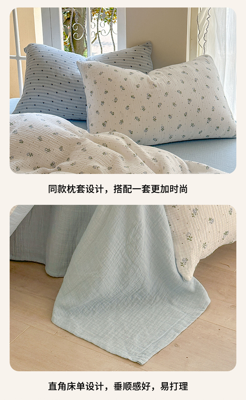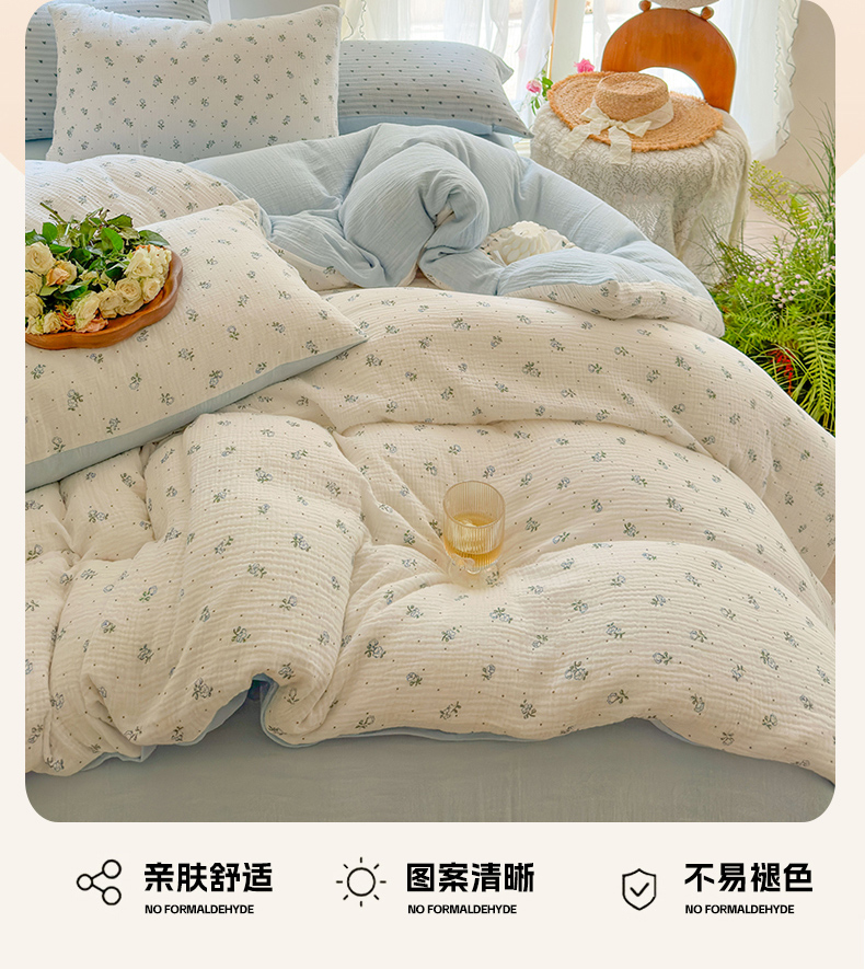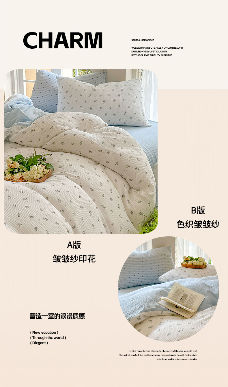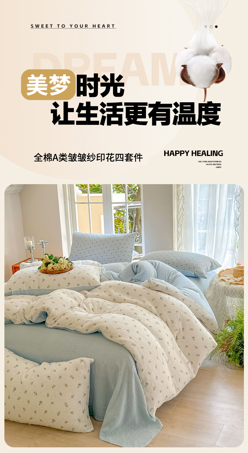 木楌家居 2025春夏新品全棉A类皱皱纱印花四件套 兰菲