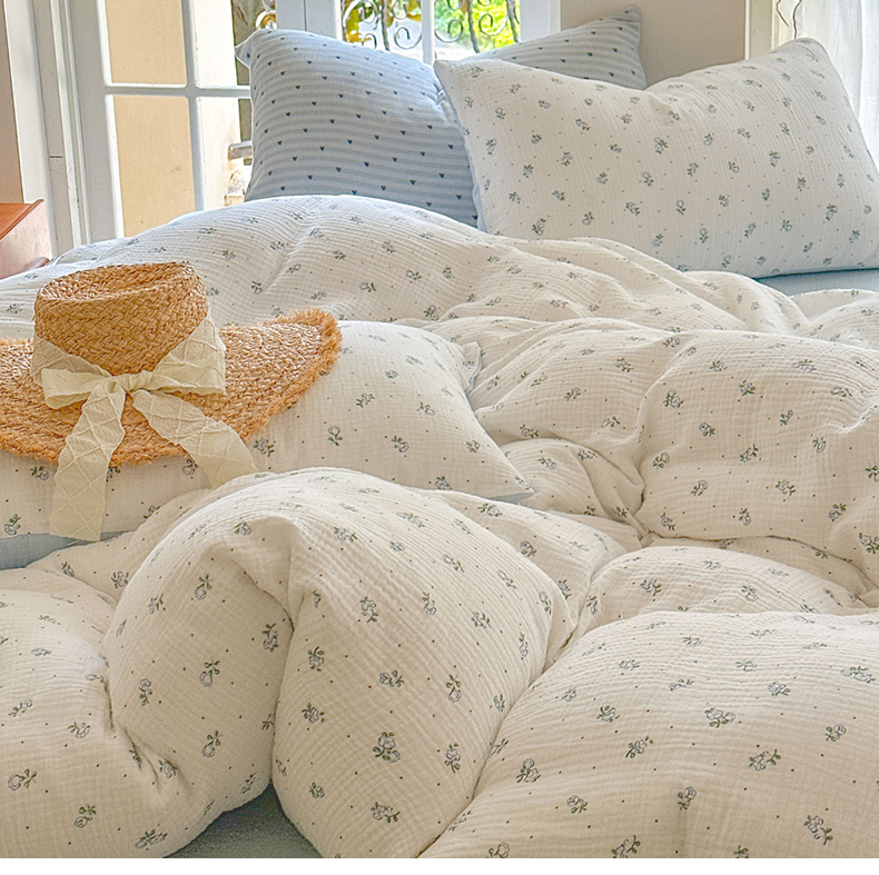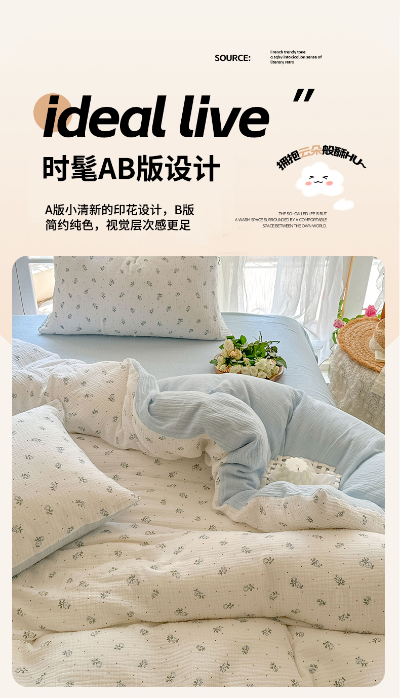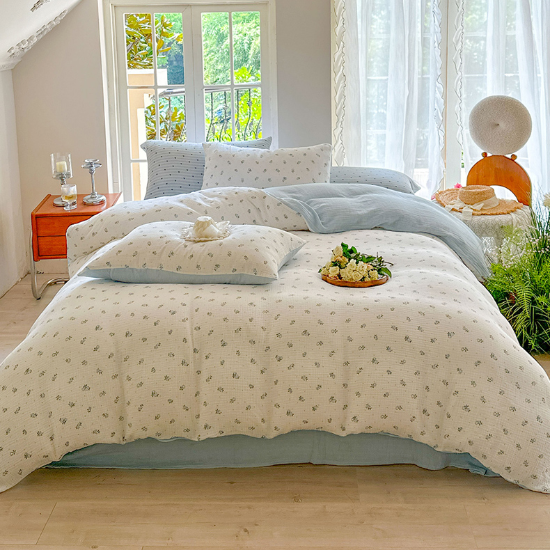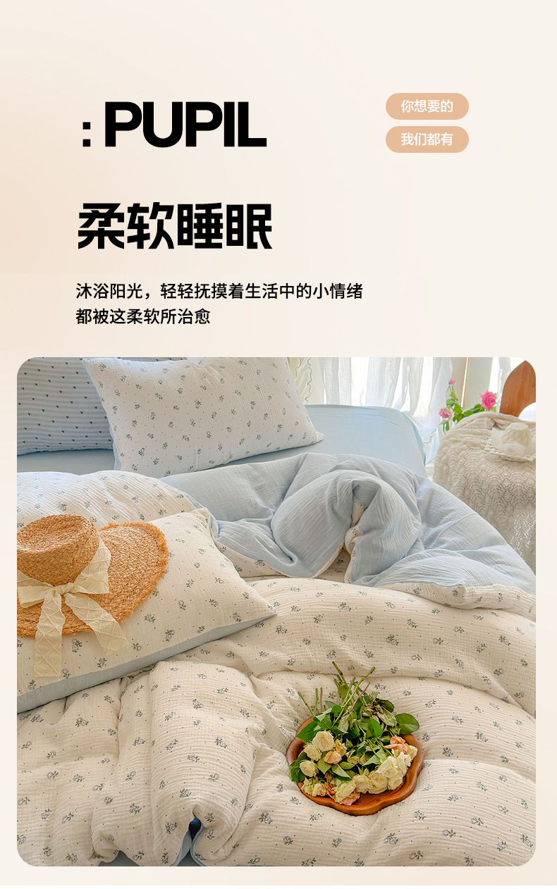 木楌家居 2025春夏新品全棉A类皱皱纱印花四件套 兰菲