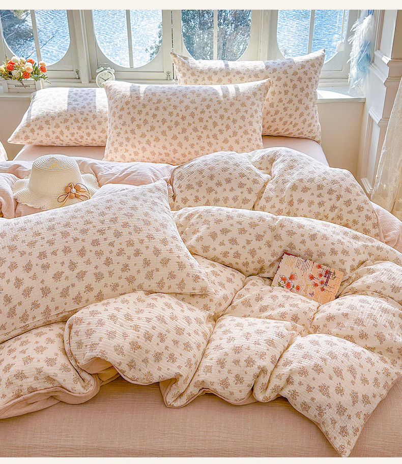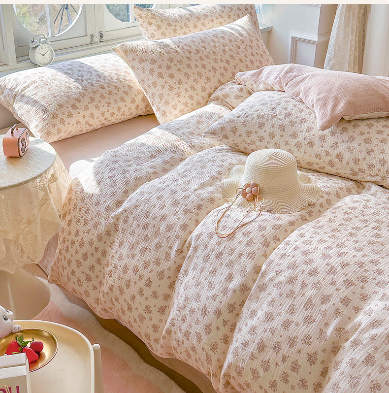 木楌家居 2025春夏新品全棉A类皱皱纱印花四件套 西棠