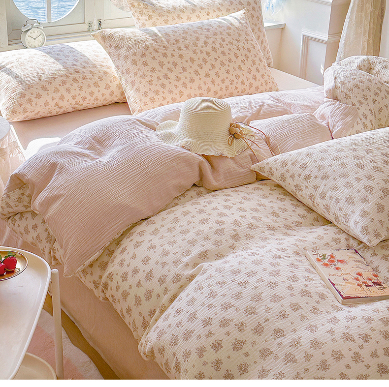商品名称:木楌家居 2025春夏新品全棉A类皱皱纱印花四件套 西棠