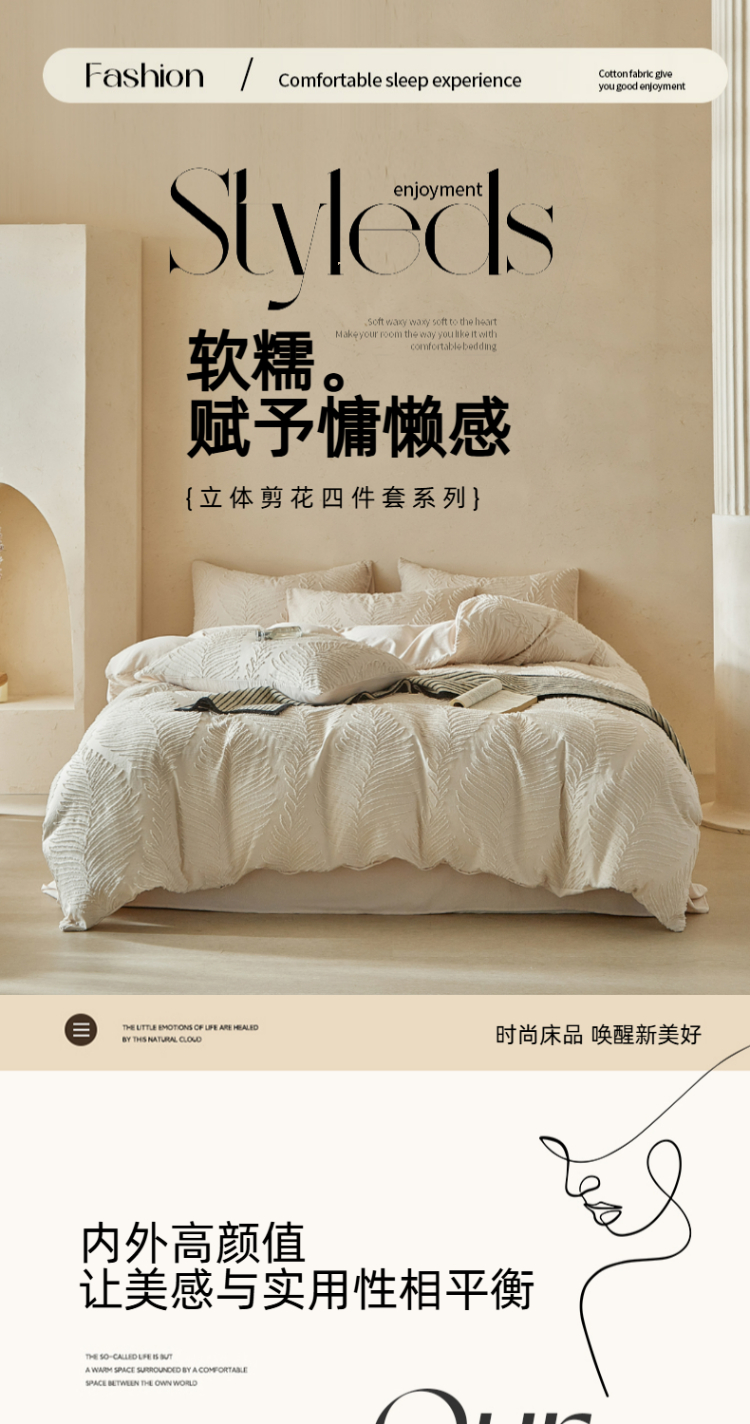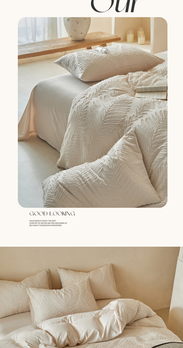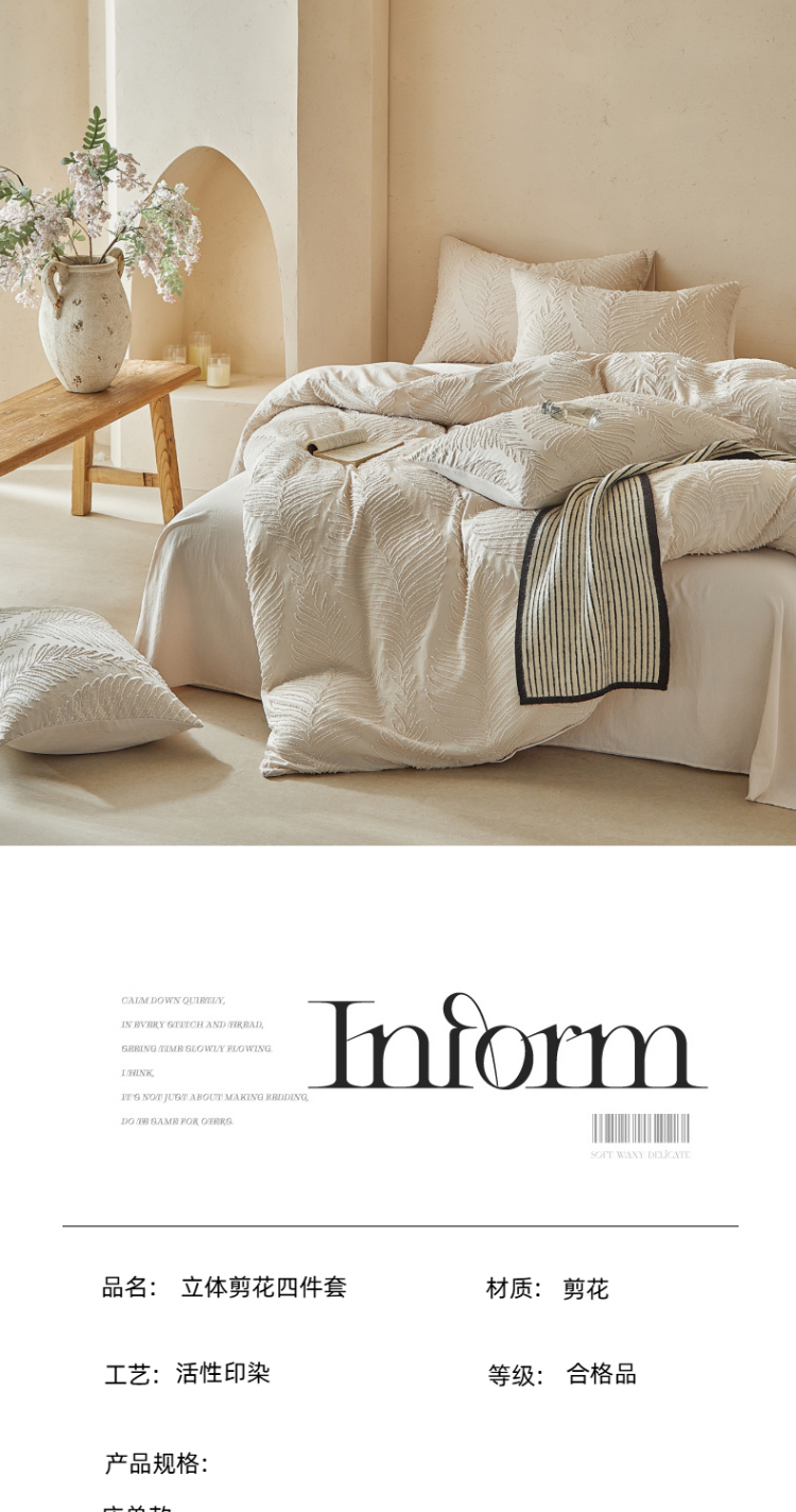 当前位置: 91家纺网 > 商品网购 > 床品套件 > 四件套 > 磨毛活性四件套 > 缘生活 2025年新款剪花针叶四件套四季款(民宿首选) 剪花针叶-卡其