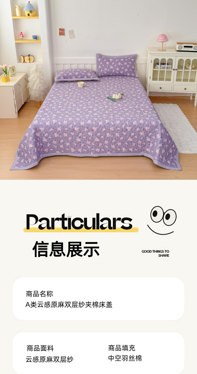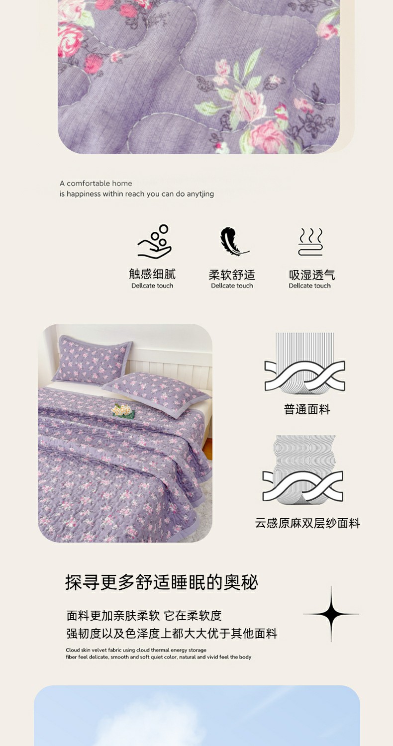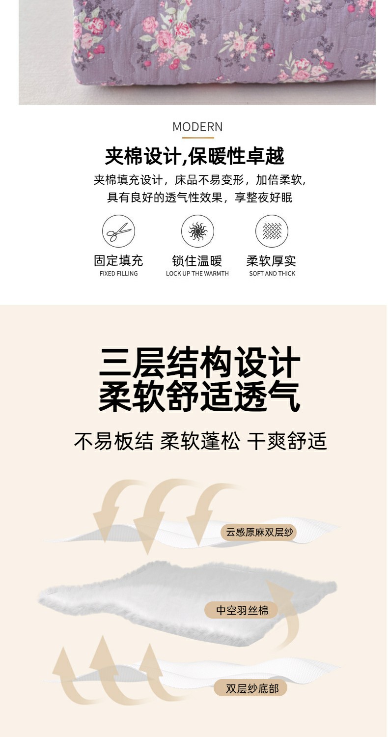 • 91家纺网 家纺一手货源 找家纺 999家纺 2025秋冬新款A类云感原麻双层纱床盖三件套四季通用炕盖夹棉床单床褥(提供买家秀) 紫韵【简约款】