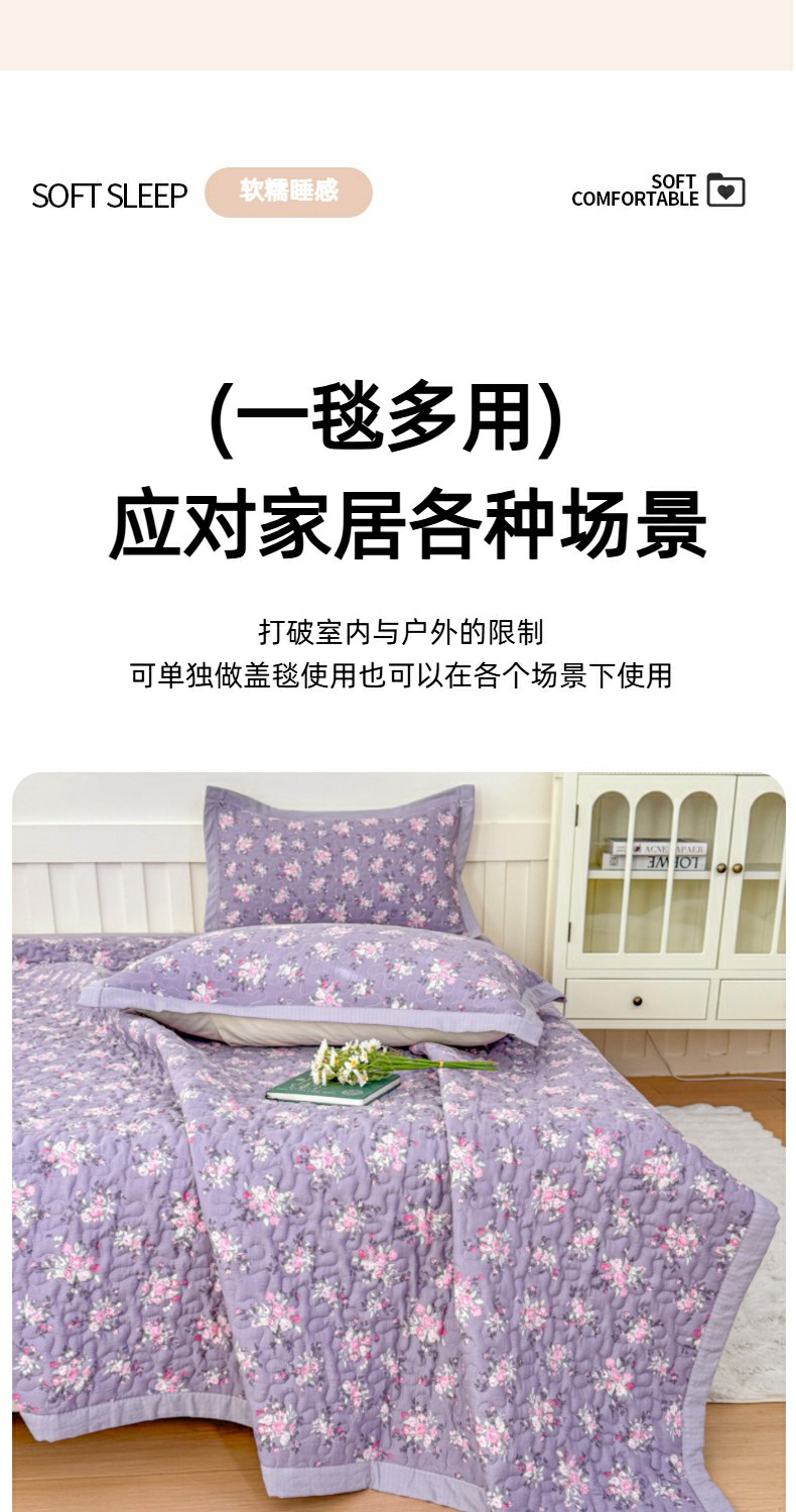 999家纺 2025秋冬新款A类云感原麻双层纱床盖三件套四季通用炕盖夹棉床单床褥(提供买家秀) 紫韵【简约款】