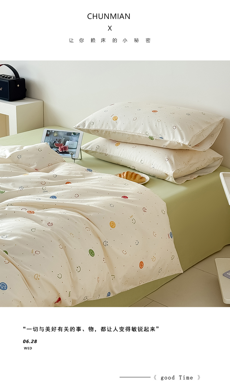 商品名称:Mr.pig猪先生水洗棉 2025新款小清新全棉四件套 笑脸
