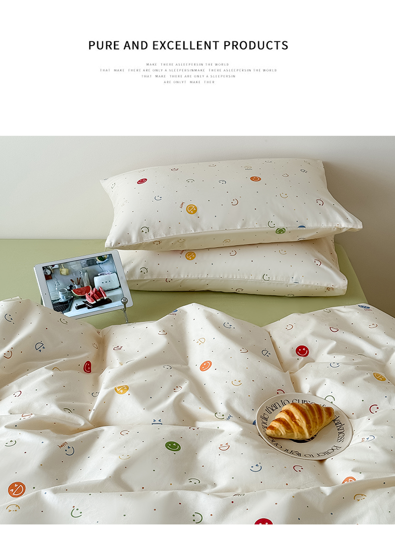 Mr.pig猪先生水洗棉 2025新款小清新全棉四件套 笑脸