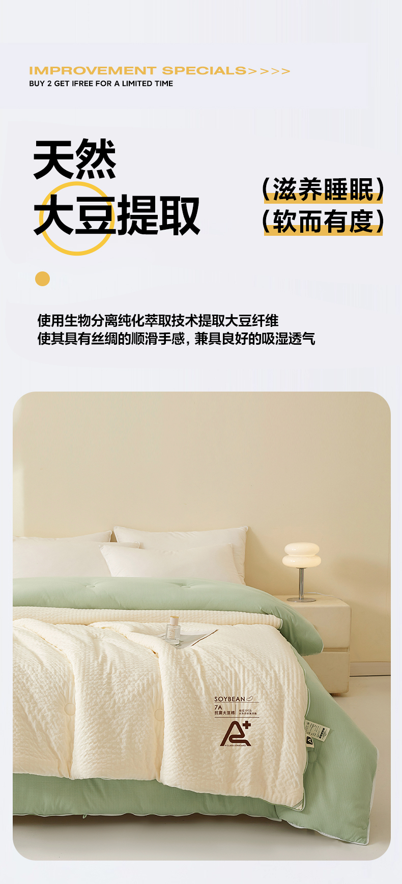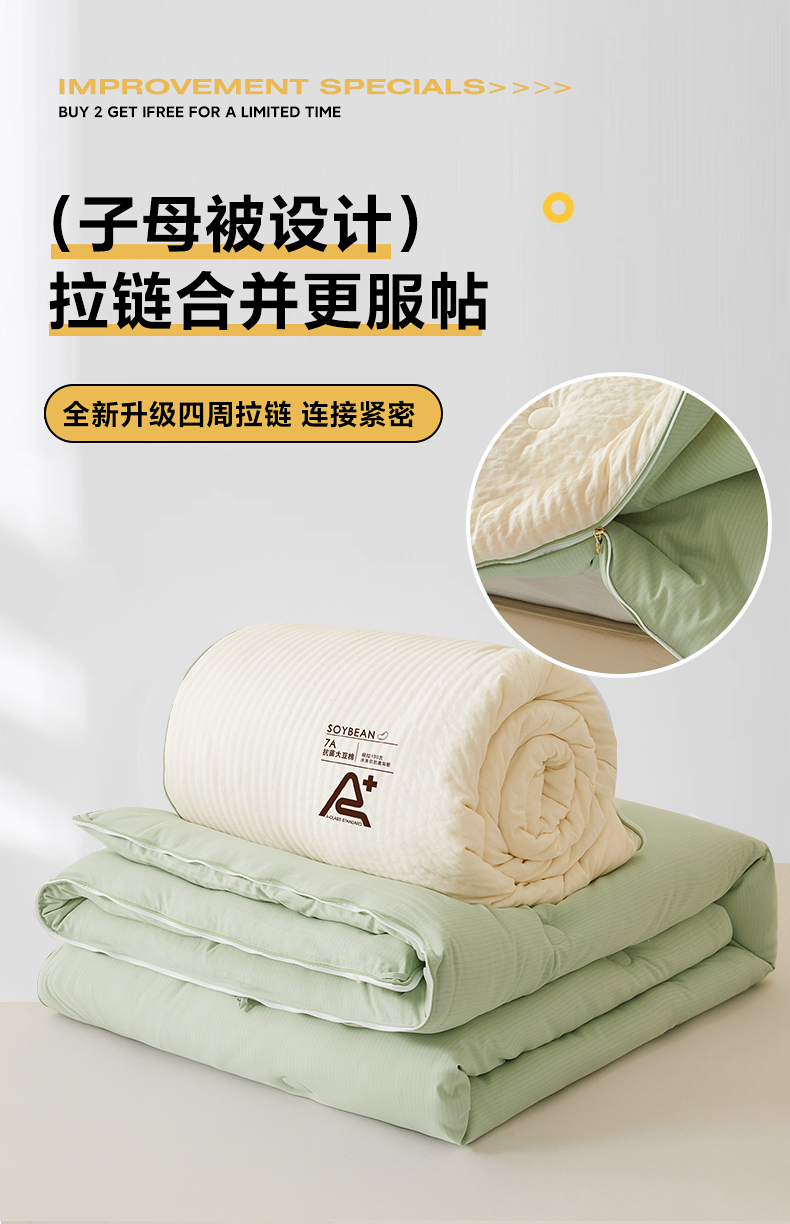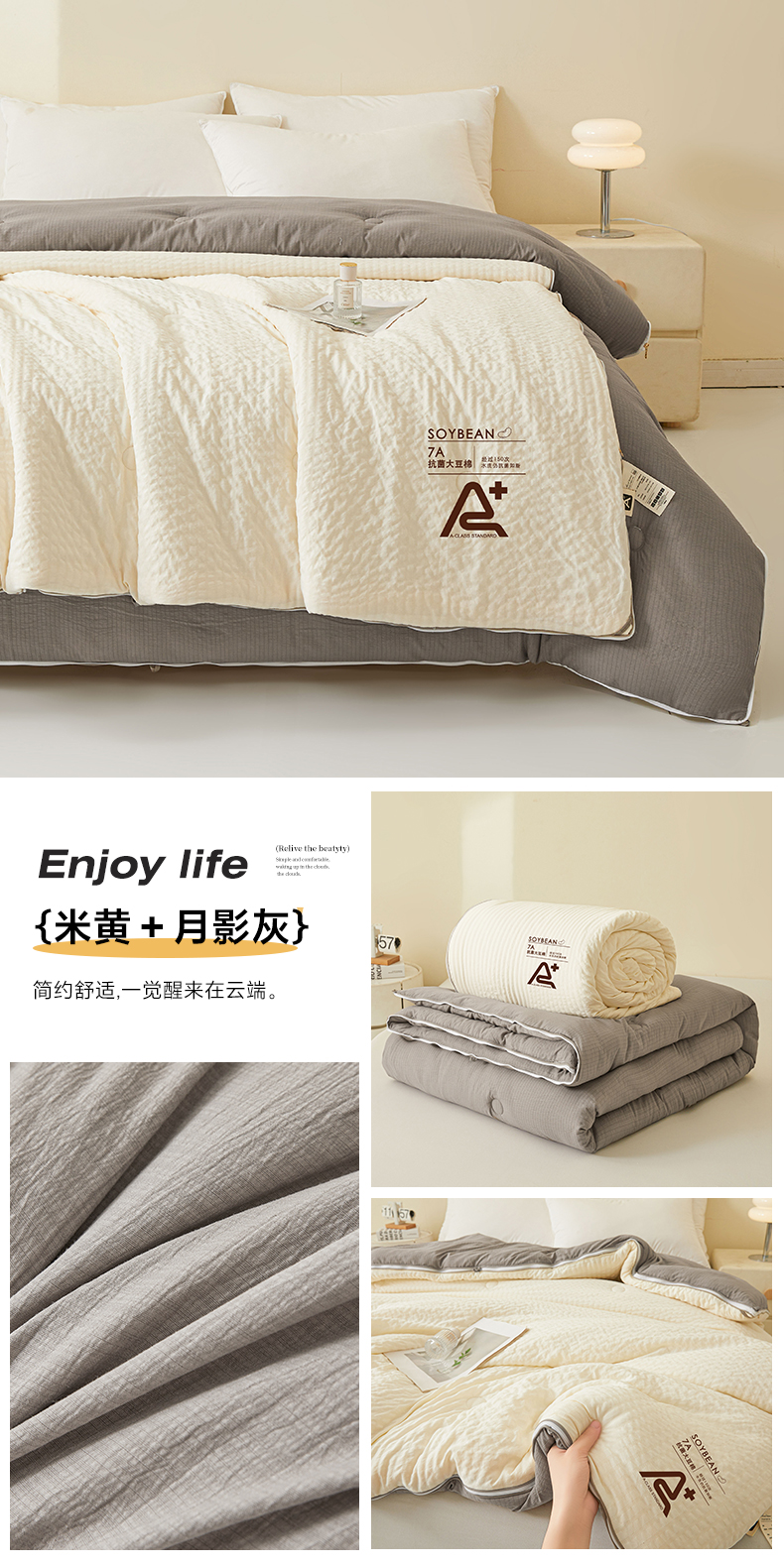 (总)维洋家纺 2025新款A类提花良质天然大豆子母被子被芯,良质白,良质灰,良质绿,良质玉