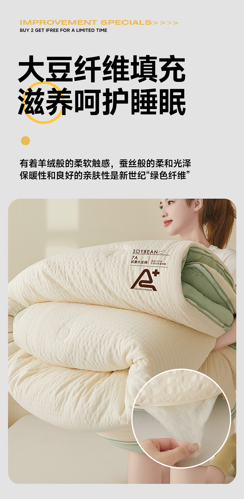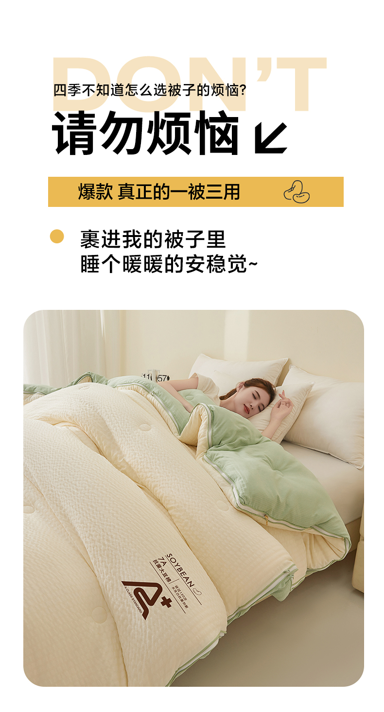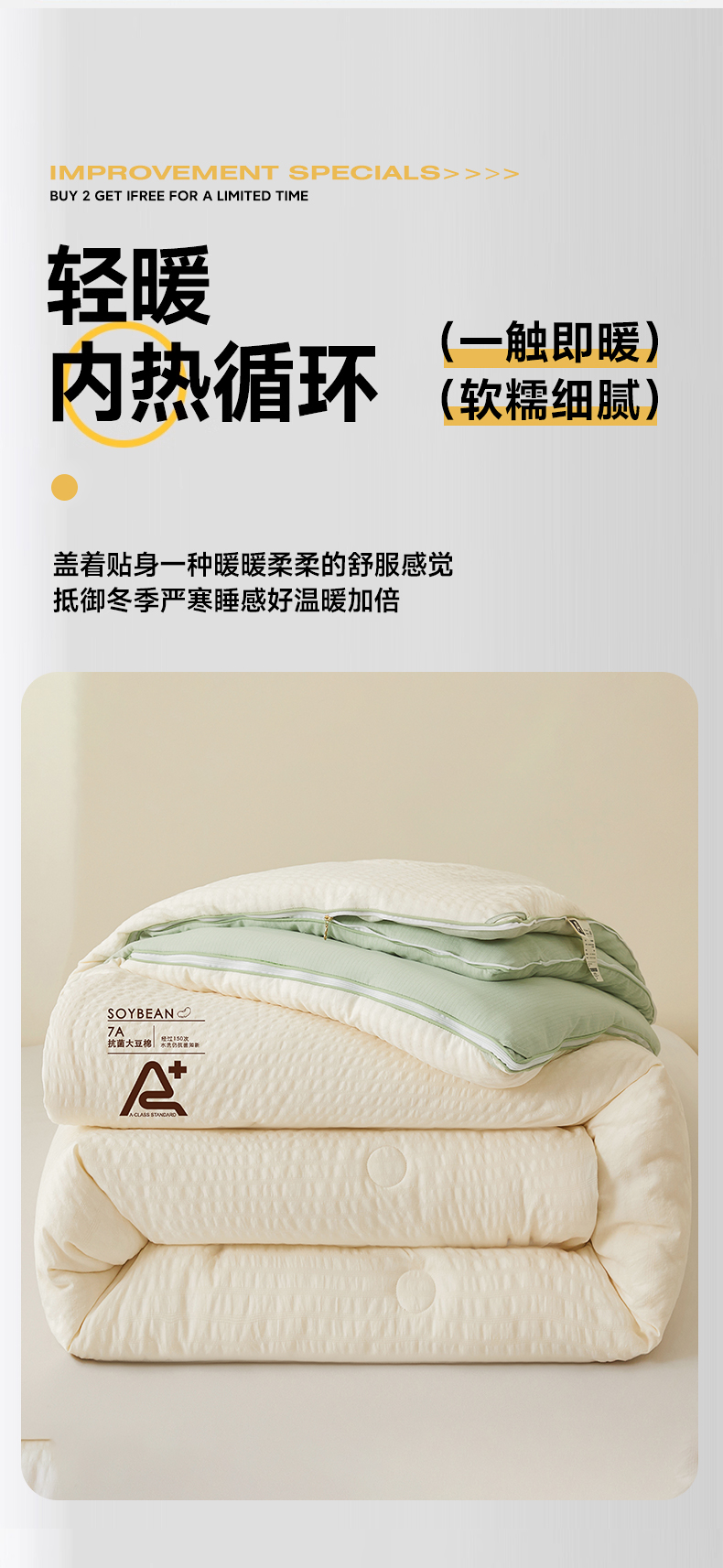 (总)维洋家纺 2025新款A类提花良质天然大豆子母被子被芯,良质白,良质灰,良质绿,良质玉