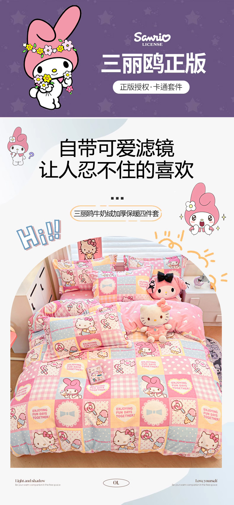 (总)暮思家居 2025新款三丽鸥正版授权高克重200克加厚保暖卡通牛奶绒四件套