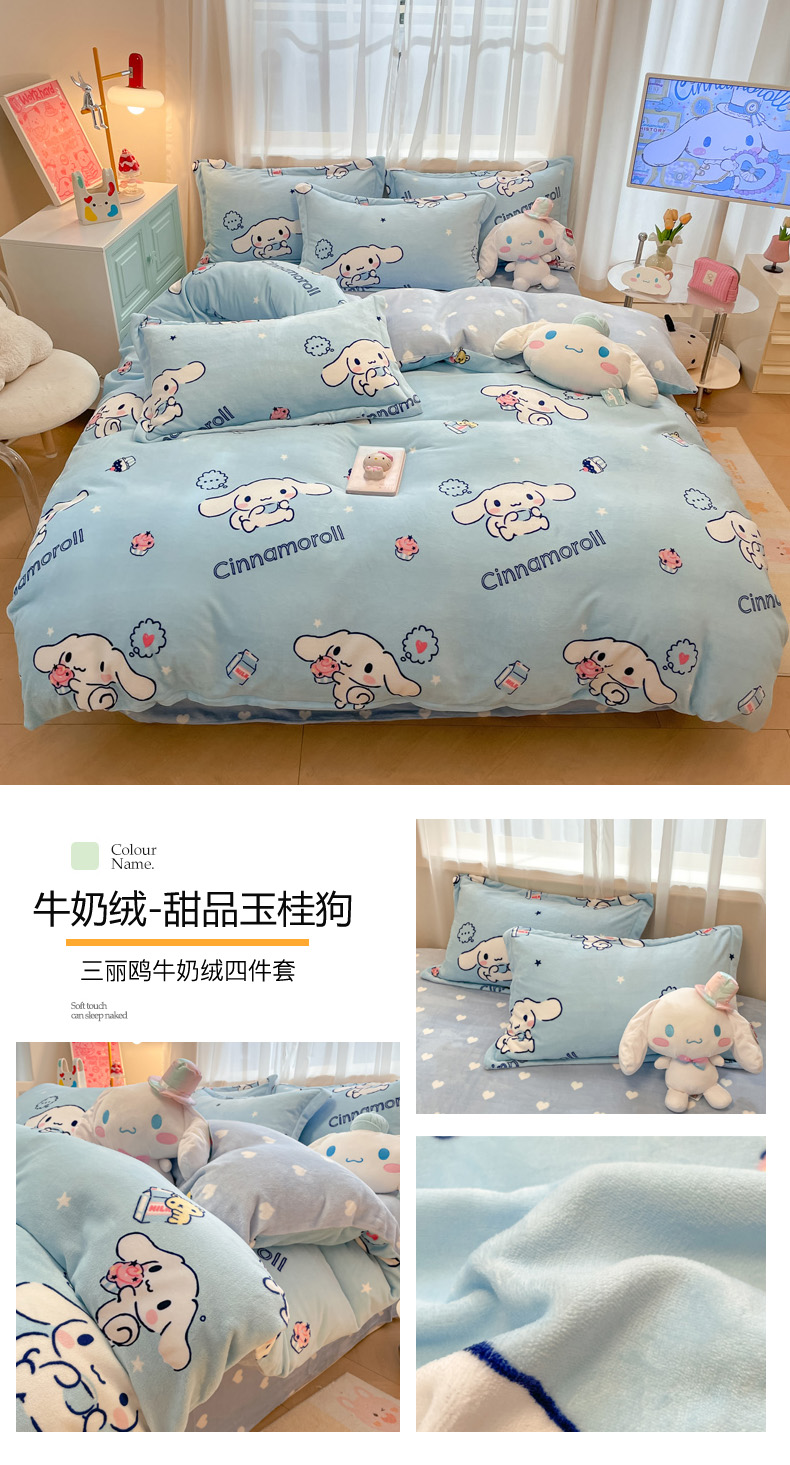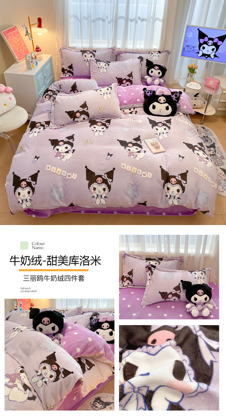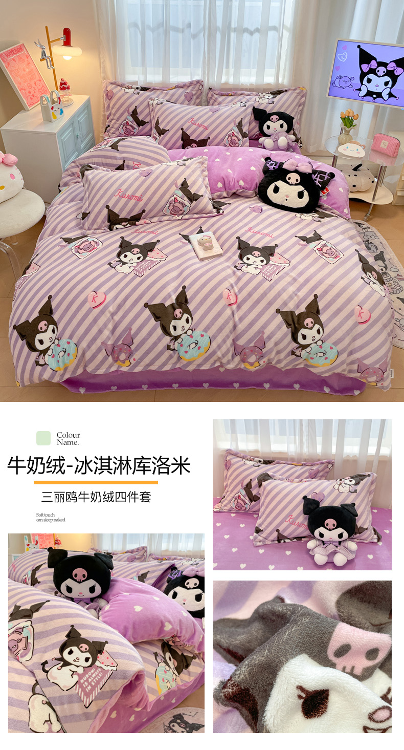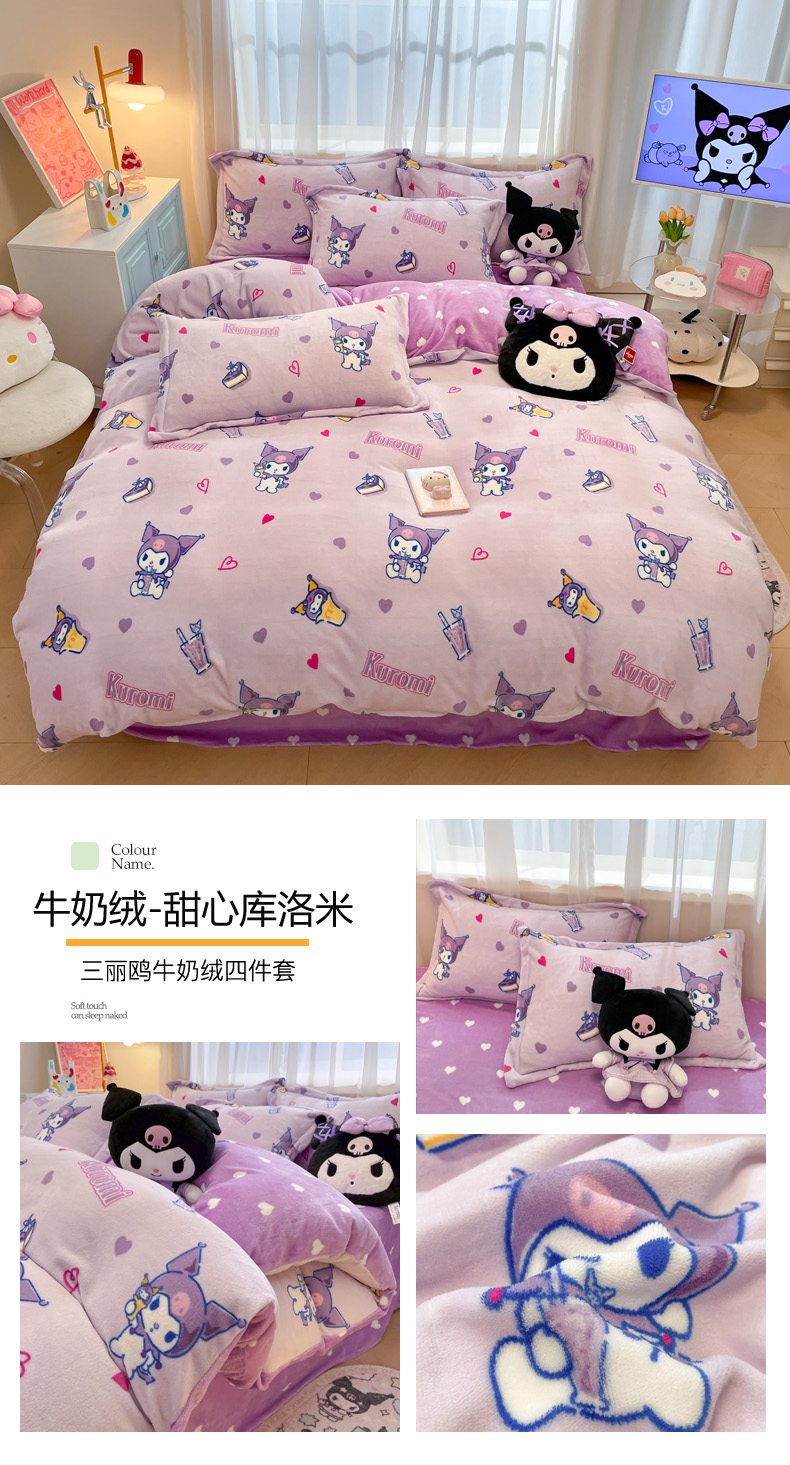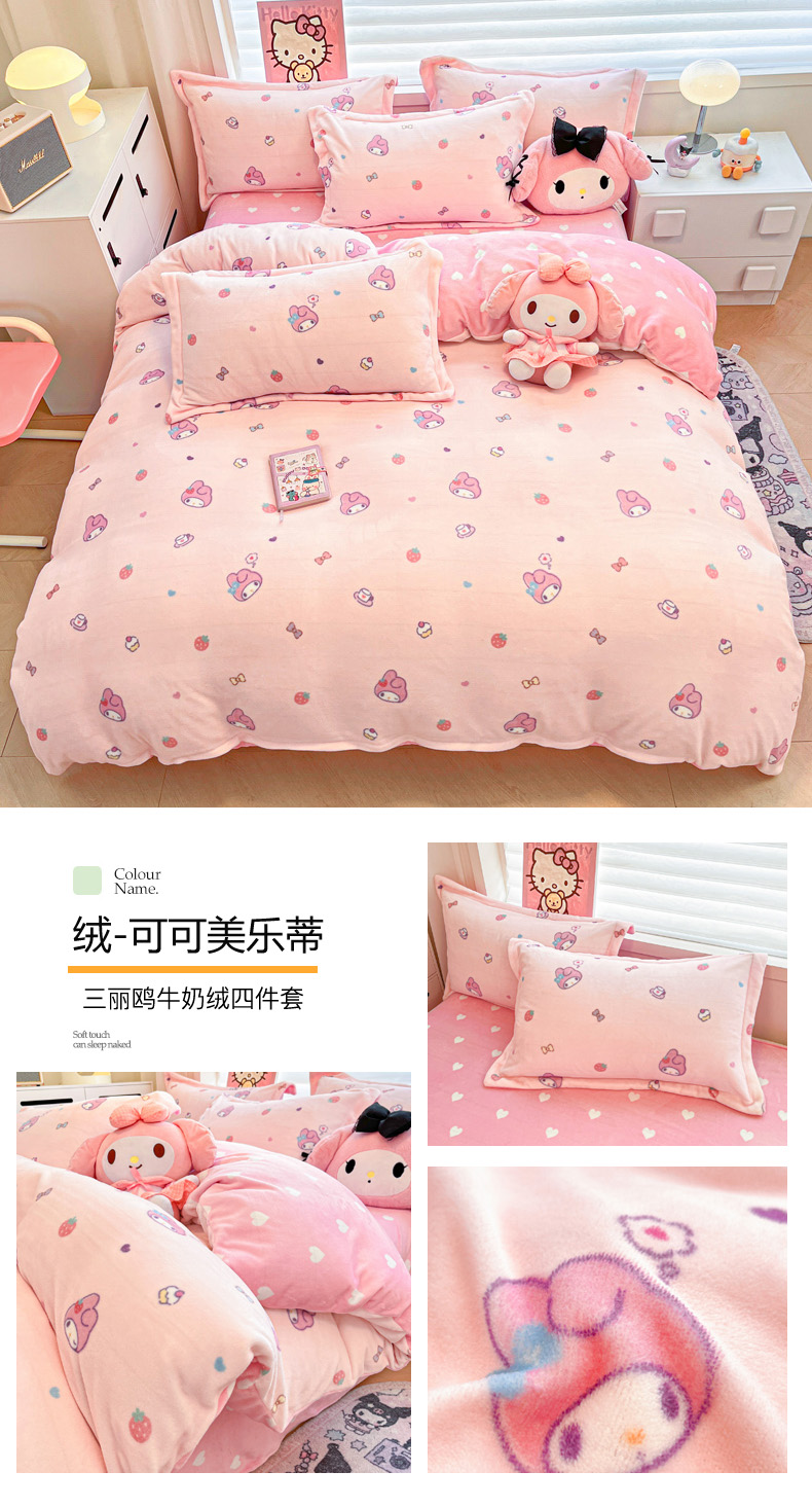商品名称:(总)暮思家居 2025新款三丽鸥正版授权高克重200克加厚保暖卡通牛奶绒四件套