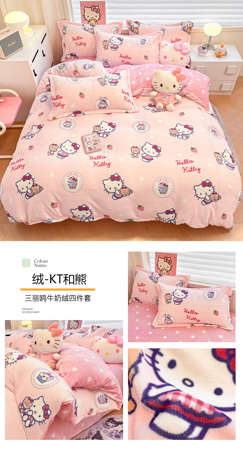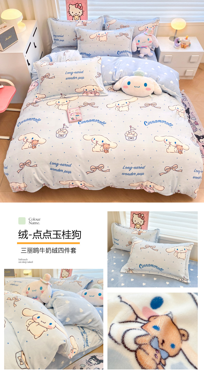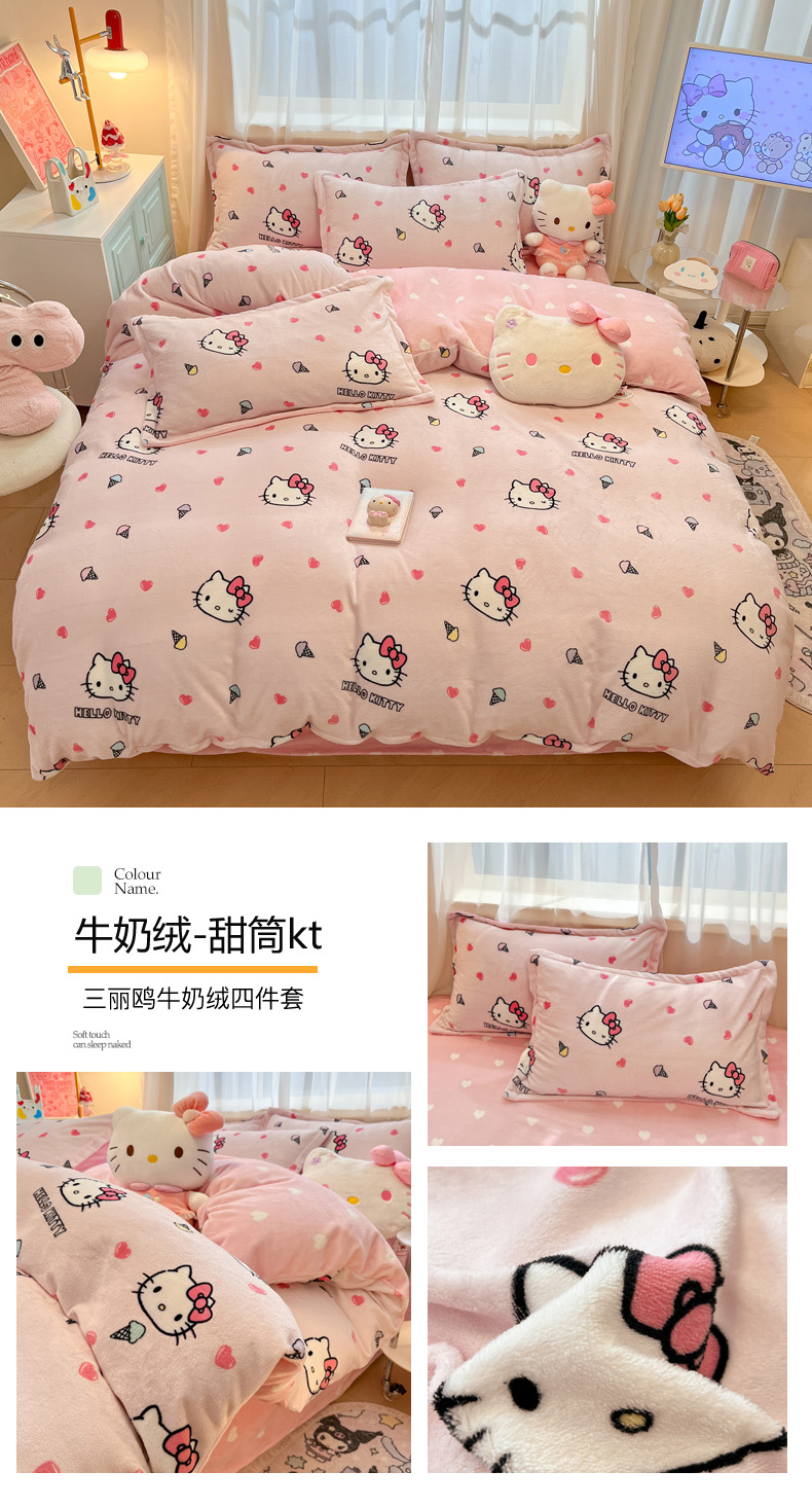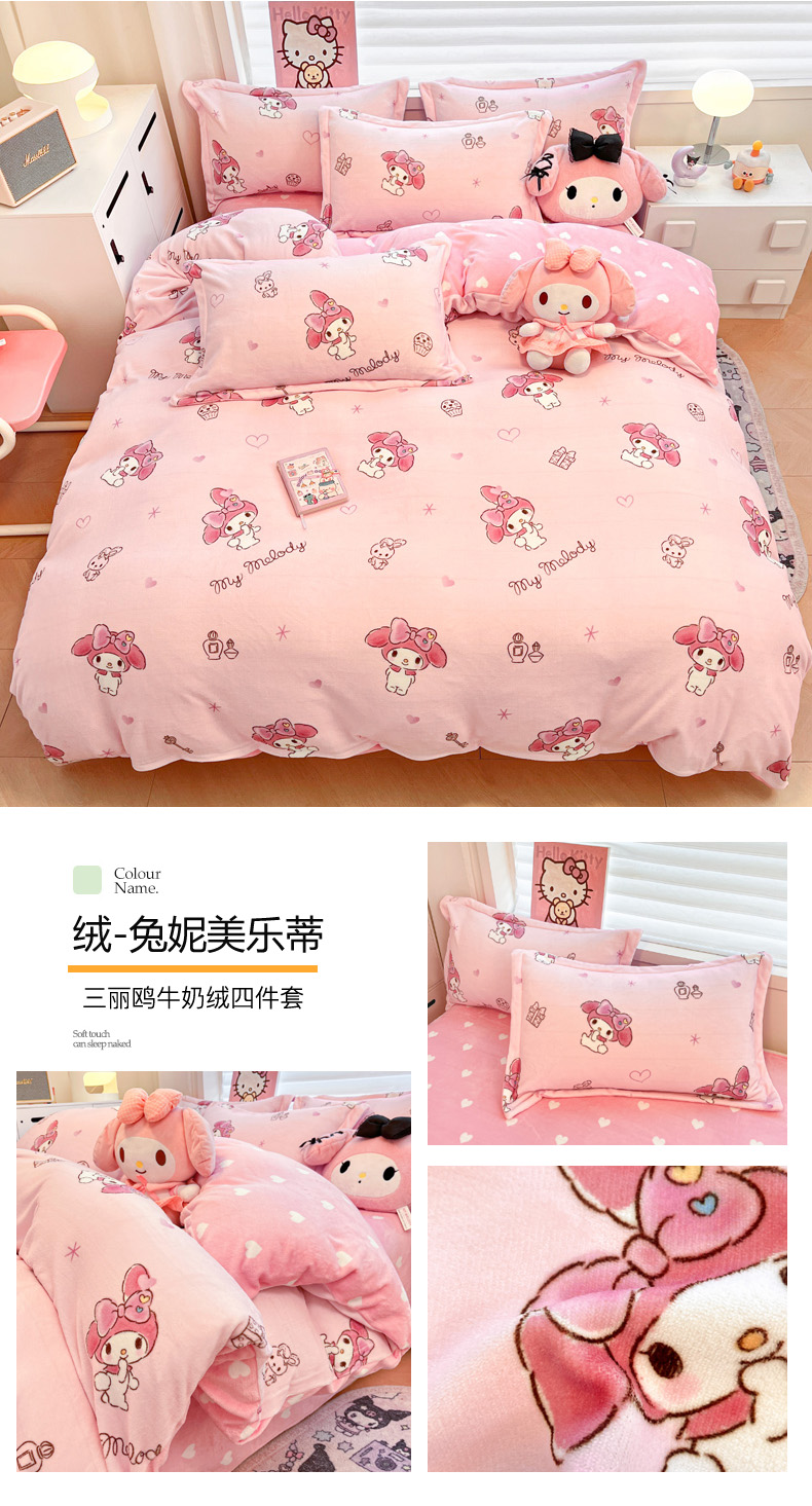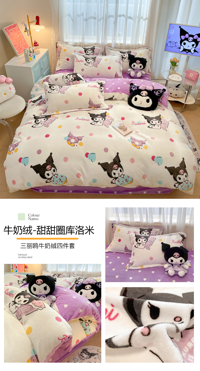 商品名称:(总)暮思家居 2025新款三丽鸥正版授权高克重200克加厚保暖卡通牛奶绒四件套