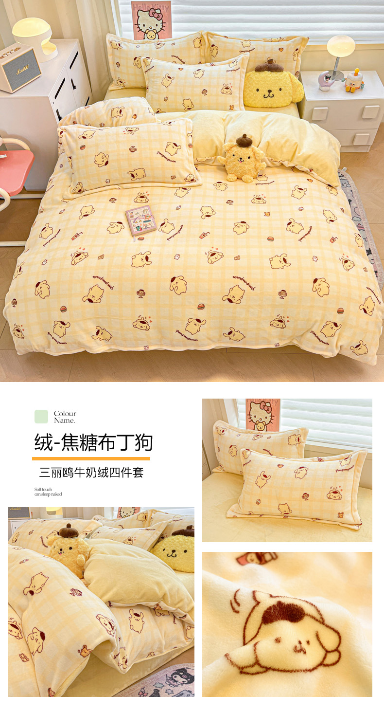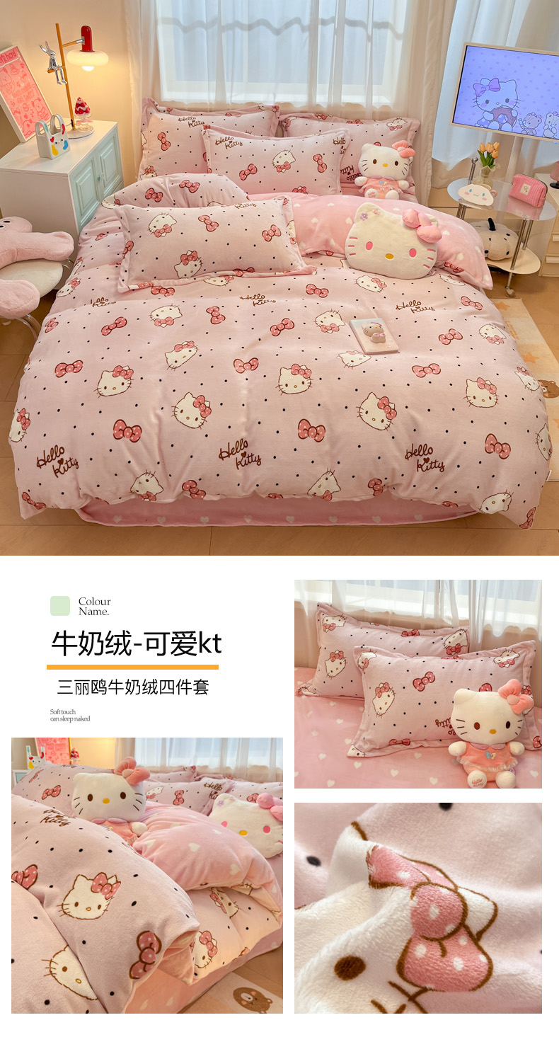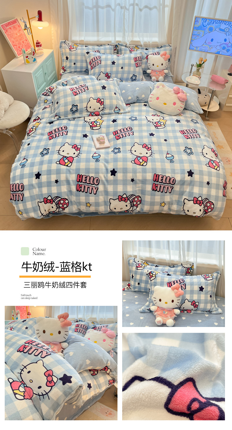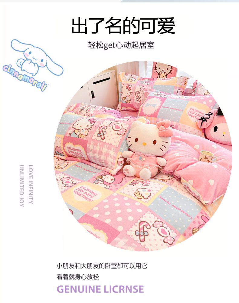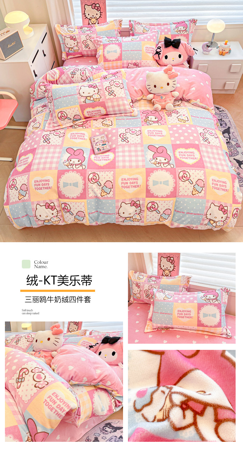商品名称:(总)暮思家居 2025新款三丽鸥正版授权高克重200克加厚保暖卡通牛奶绒四件套