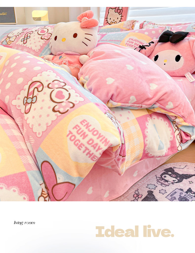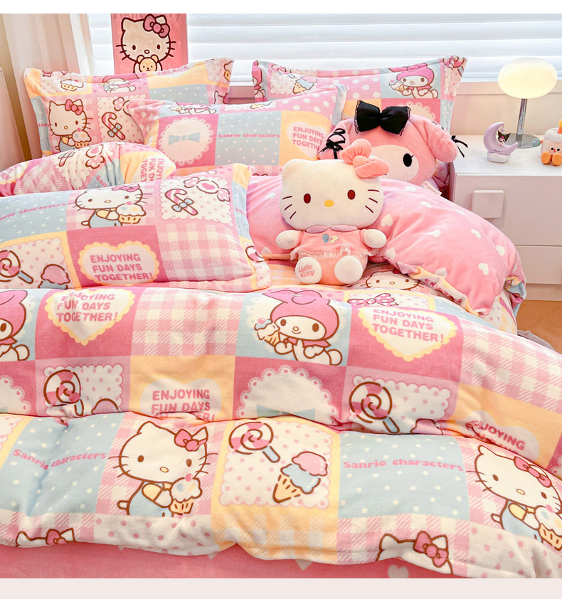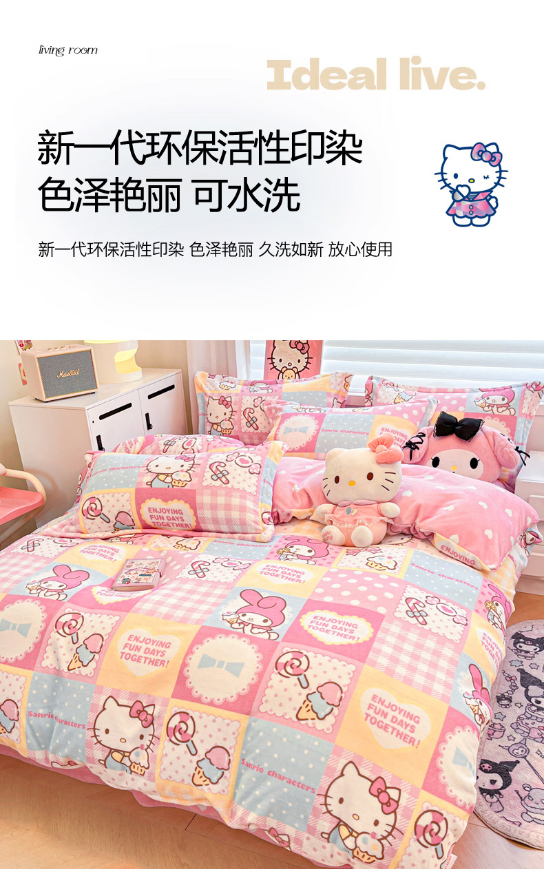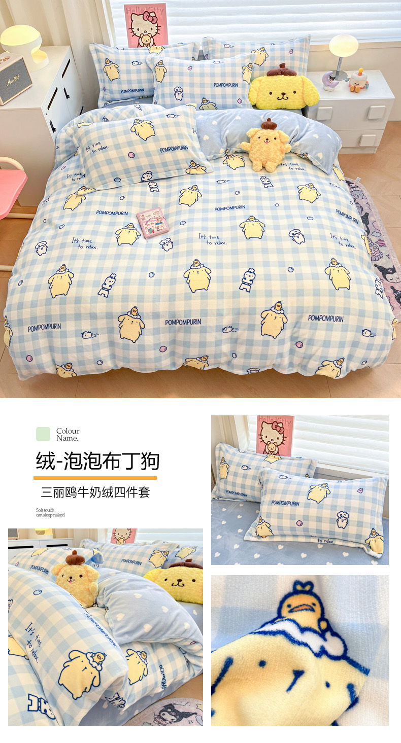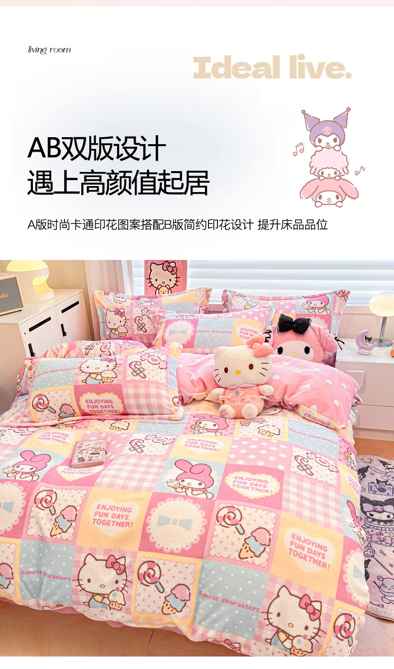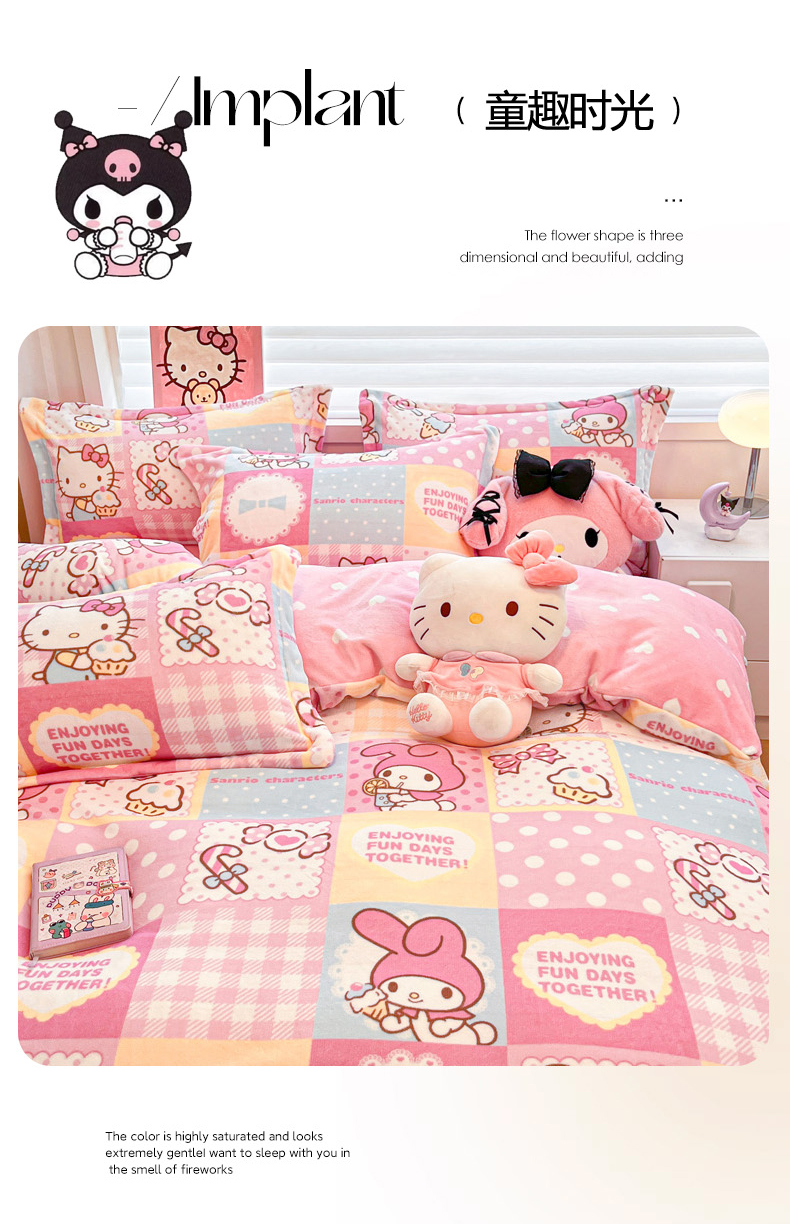 商品名称:(总)暮思家居 2025新款三丽鸥正版授权高克重200克加厚保暖卡通牛奶绒四件套