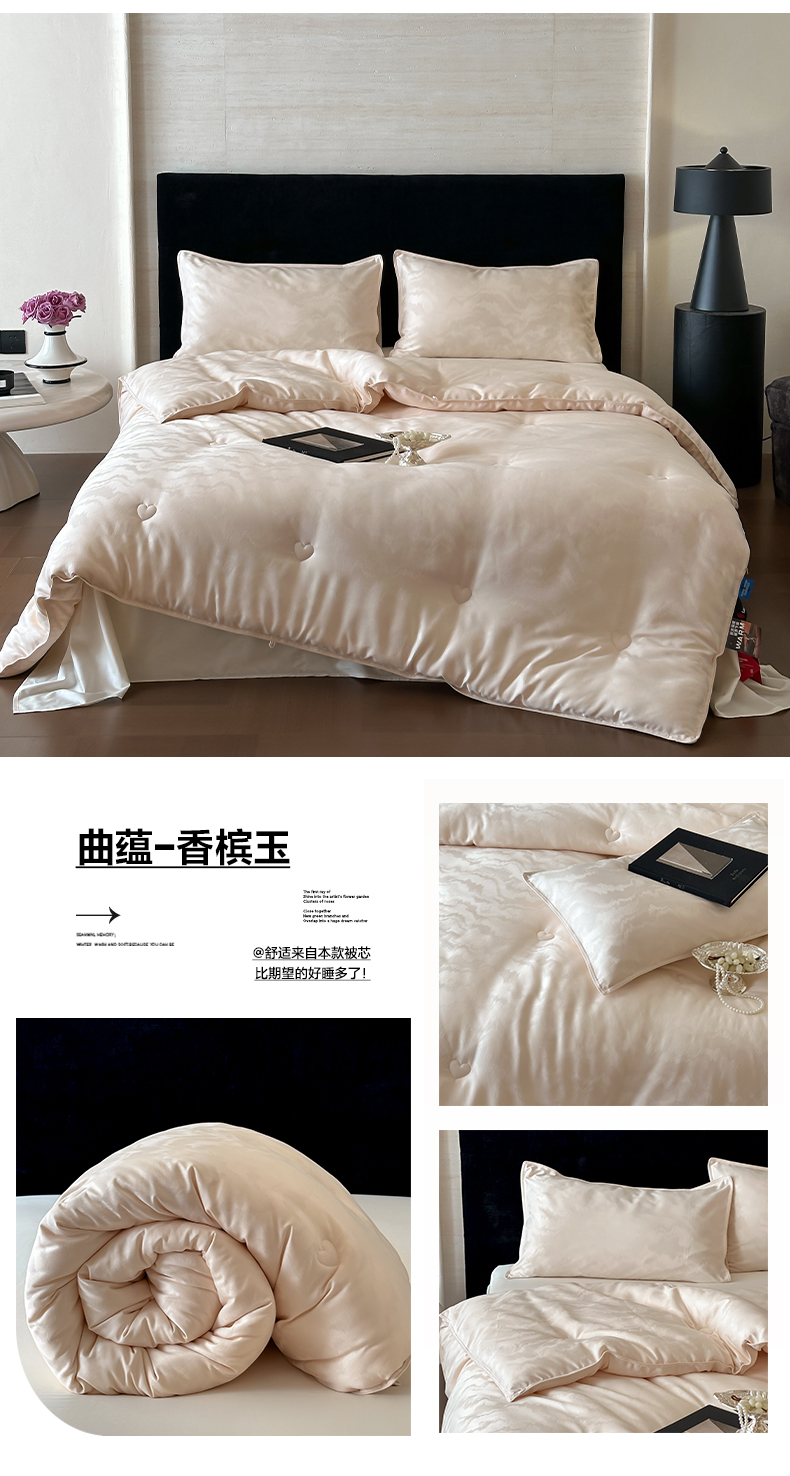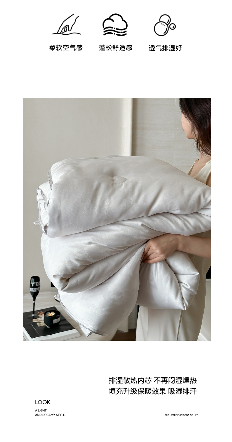 商品名称:一加一 2025新款御丝缎七彩银丝大提花航天恒温被子被芯 曲蕴-香槟银
