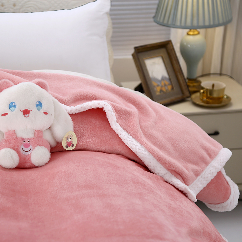 (总)伊凡毯业 2025新款230克兔兔绒多功能毛毯,粉色,绿色,奶白